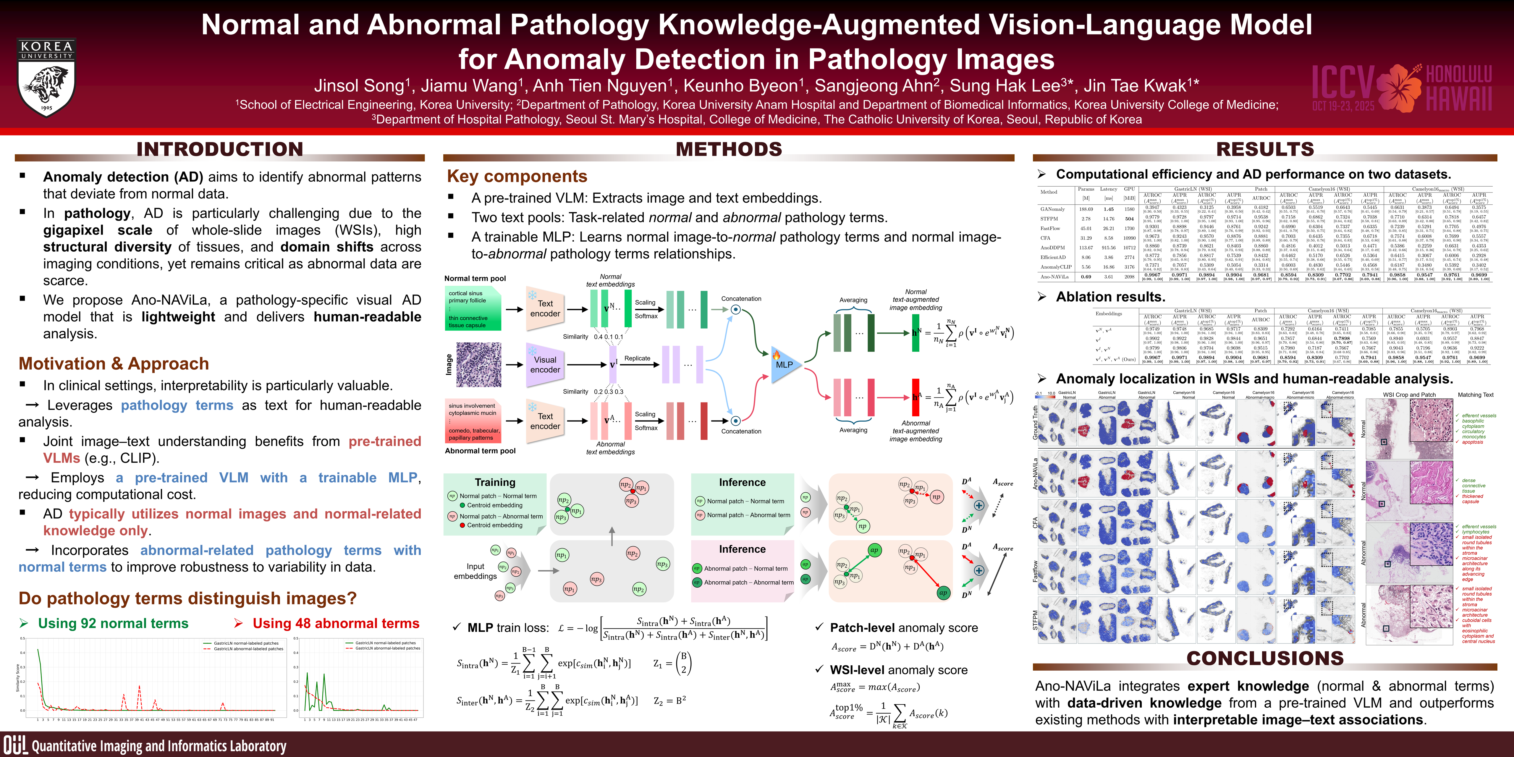 Anomaly detection aims to identify rare and scarce anomalies, which is particularly challenging in computational pathology, where disease-related data are often limited or nonexistent. Existing anomaly detection methods, primarily designed for industrial settings, face limitations in pathology due to computational constraints, diverse tissue structures, and lack of interpretability. To address these challenges, we propose Ano-NAViLa, a normal and abnormal pathology knowledge-augmented vision-language model for anomaly detection in pathology images. Ano-NAViLa utilizes a pre-trained vision-language model with a lightweight trainable MLP, facilitating computationally efficiency. By incorporating both normal and abnormal pathology knowledge, Ano-NAViLa enhances accuracy and robustness to variability in pathology images and provides interpretability through image-text associations. Evaluated on two lymph node datasets from different organs, Ano-NAViLa achieves the state-of-the-art performance in anomaly detection and localization, outperforming competing models.