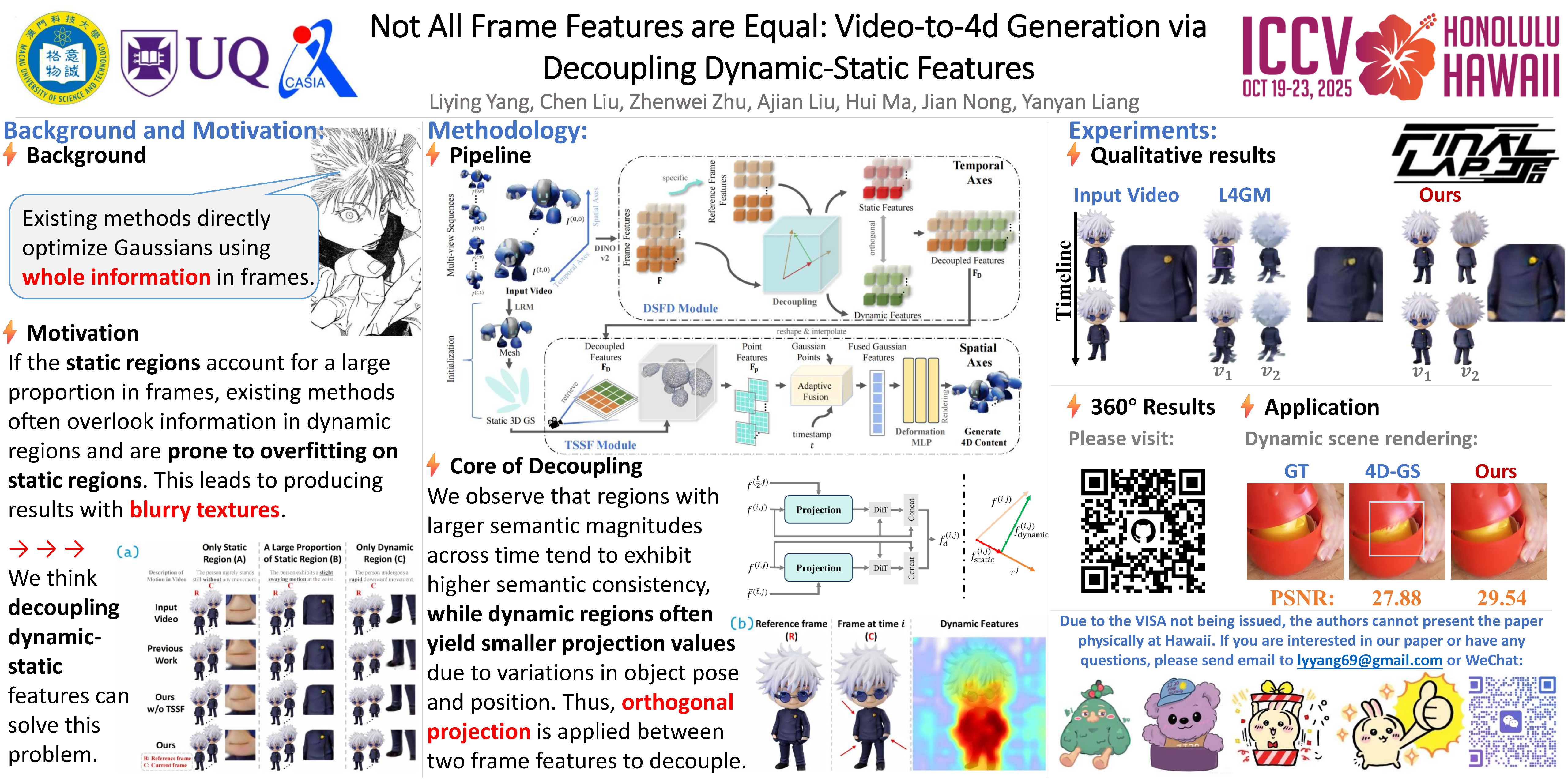 Not All Frame Features Are Equal: Video-to-4D Generation via Decoupling Dynamic-Static Features