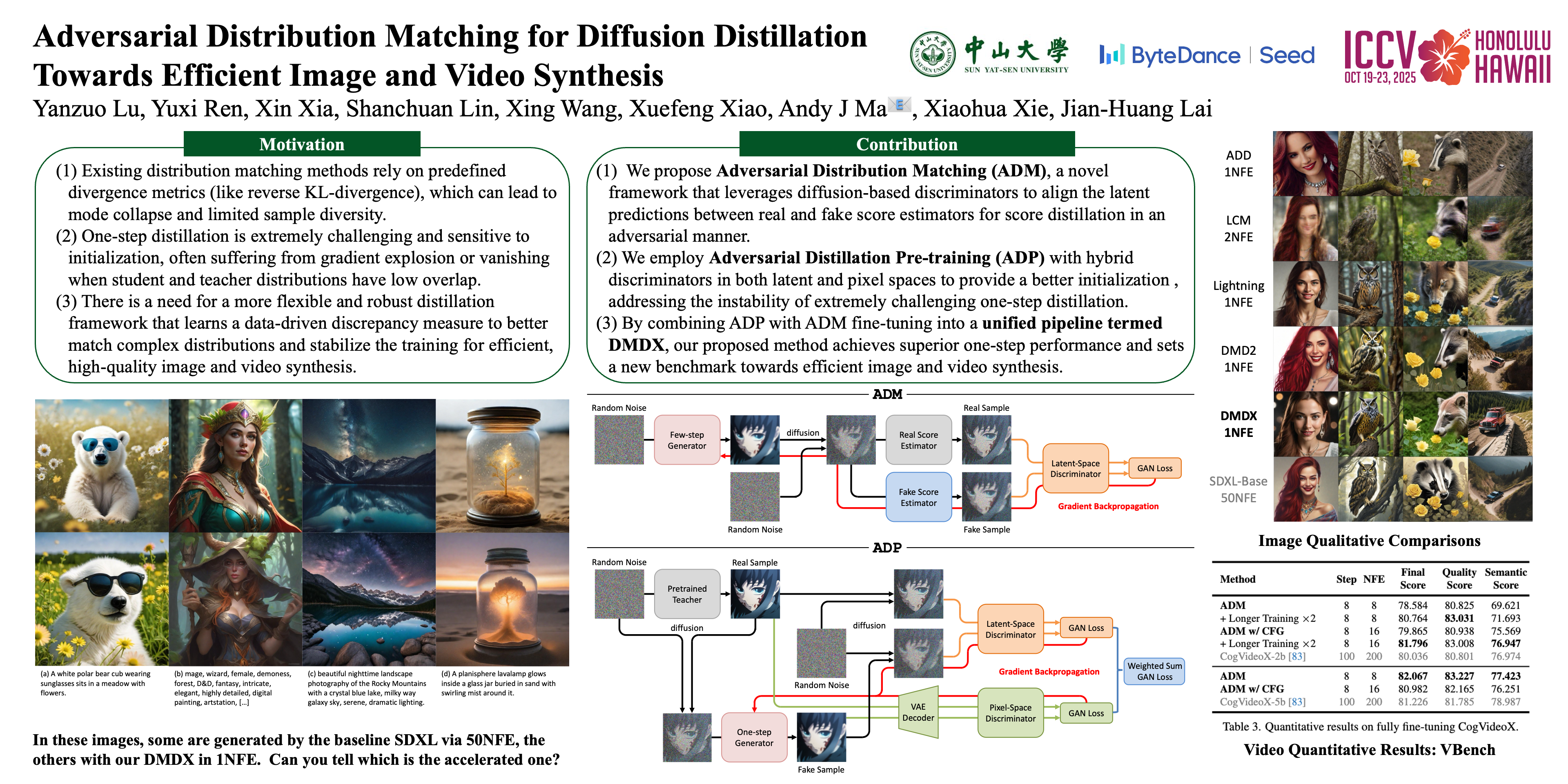 Adversarial Distribution Matching for Diffusion Distillation Towards Efficient Image and Video Synthesis