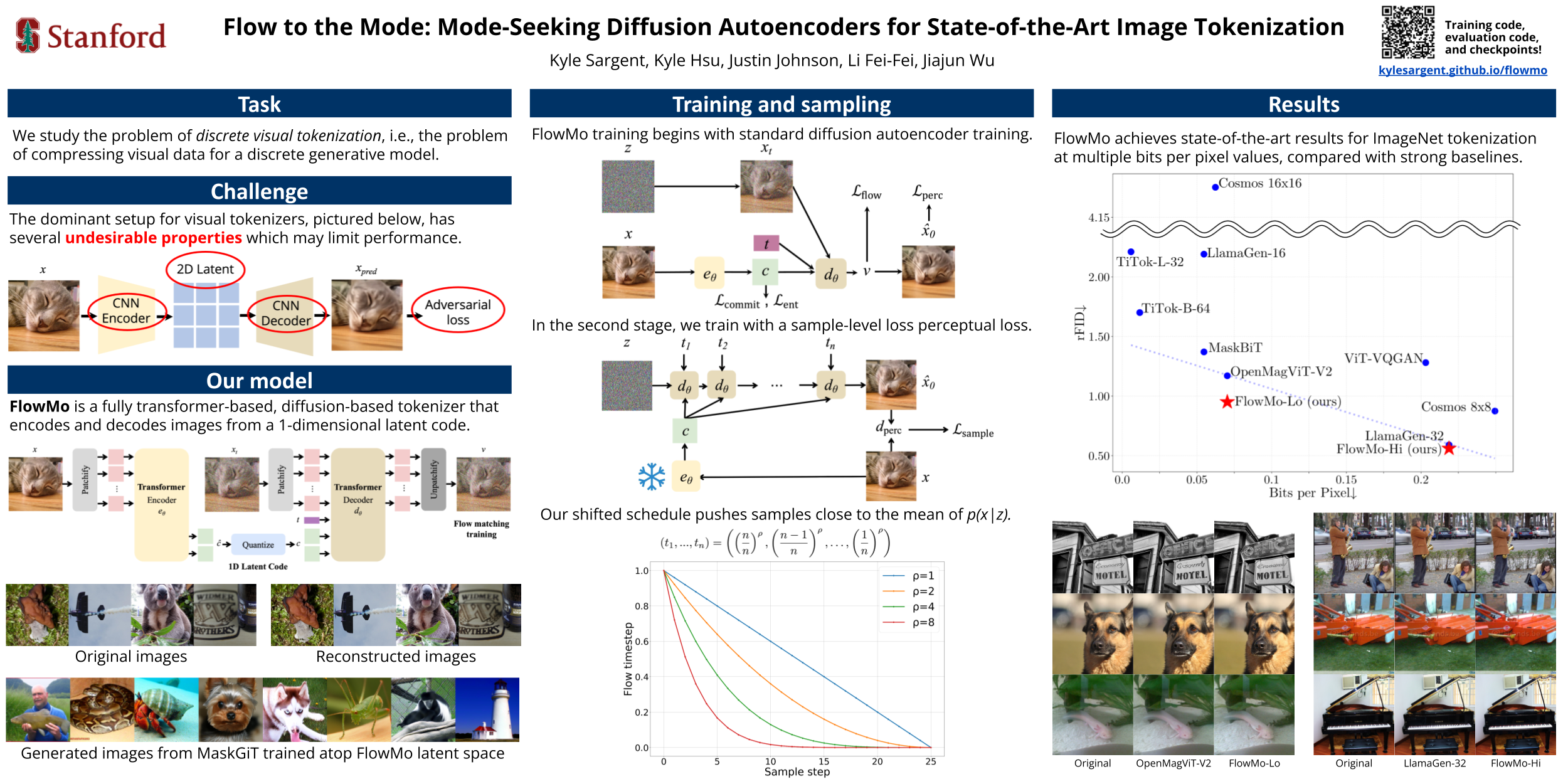 Since the advent of popular visual generation frameworks like VQGAN and Latent Diffusion Models, state-of-the-art image generation systems have generally been two-stage systems that first tokenize or compress visual data into a lower-dimensional latent space before learning a generative model. Tokenizer training typically follows a standard recipe in which images are compressed and reconstructed subject to a combination of MSE, perceptual, and adversarial losses. Diffusion autoencoders have been proposed in prior work as a way to learn end-to-end perceptually-oriented image compression, but have not yet shown state-of-the-art performance on the competitive task of ImageNet-1K reconstruction. In this work, we propose FlowMo, a transformer-based diffusion autoencoder. FlowMo achieves a new state-of-the-art for image tokenization at multiple bitrates. We achieve this without using convolutions, adversarial losses, spatially-aligned 2D latent codes, or distilling from other tokenizers. Our key insight is that FlowMo training should be broken into a mode-matching pre-training stage and a mode-seeking post-training stage. We conduct extensive analysis and ablations, and we additionally train generative models atop the FlowMo tokenizer and verify the performance. We will release our code and model checkpoints upon acceptance.