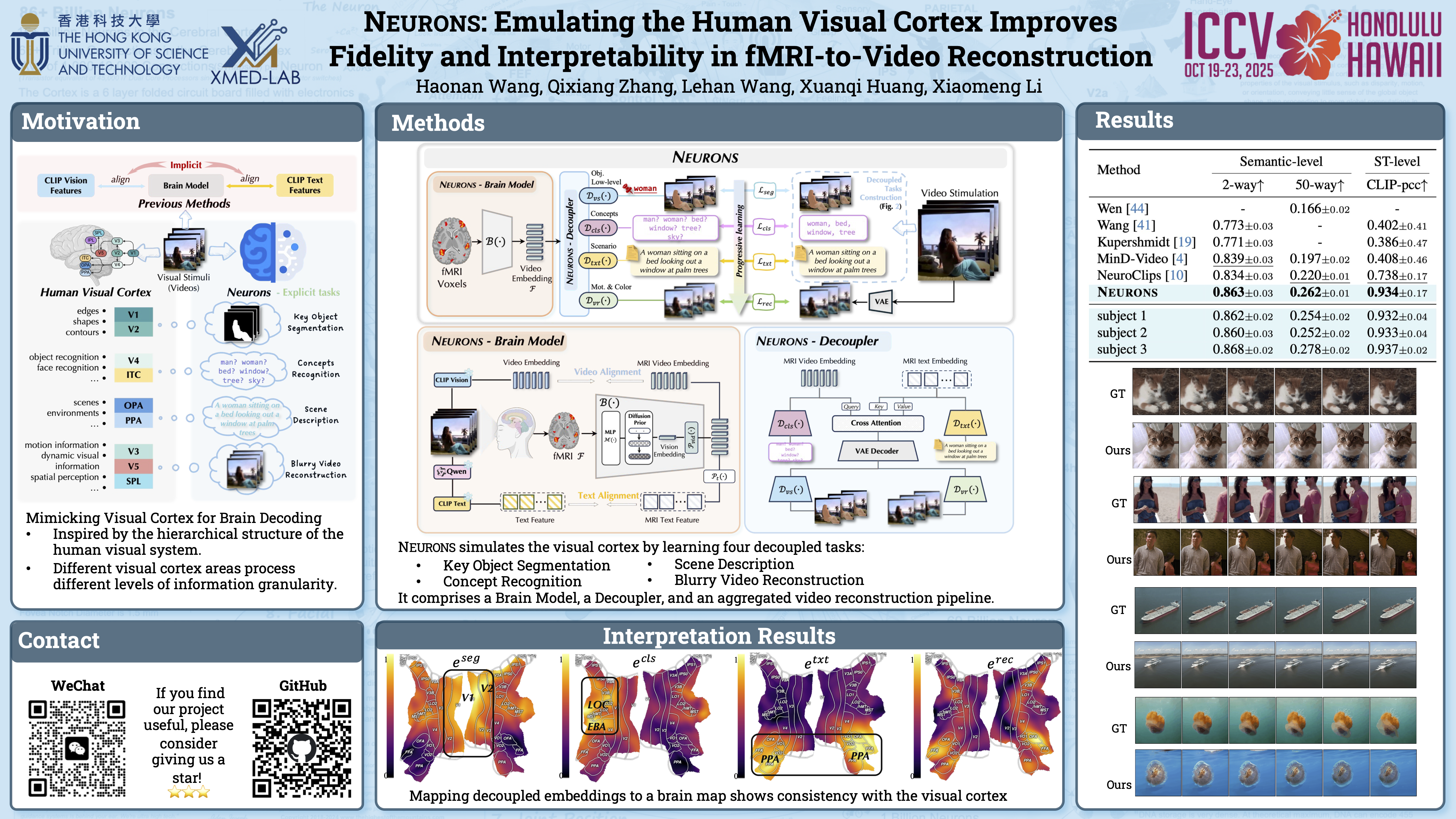 Neurons: Emulating the Human Visual Cortex Improves Fidelity and Interpretability in fMRI-to-Video Reconstruction