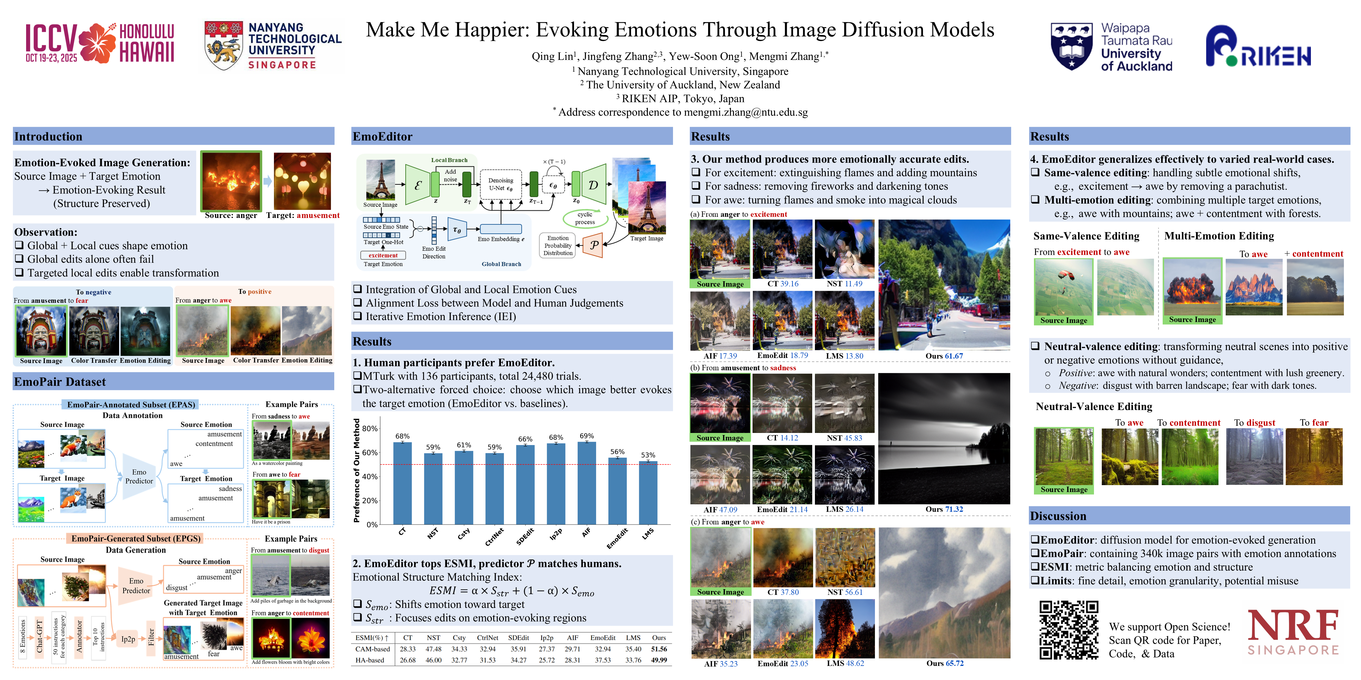Despite the rapid progress in image generation, emotional image editing remains under-explored. The semantics, context, and structure of an image can evoke emotional responses, making emotional image editing techniques valuable for various real-world applications, including treatment of psychological disorders, commercialization of products, and artistic design. First, we present a novel challenge of emotion-evoked image generation, aiming to synthesize images that evoke target emotions while retaining the semantics and structures of the original scenes. To address this challenge, we propose a diffusion model capable of effectively understanding and editing source images to convey desired emotions and sentiments. Moreover, due to the lack of emotion editing datasets, we provide a unique dataset consisting of 340,000 pairs of images and their emotion annotations. Furthermore, we conduct human psychophysics experiments and introduce a new evaluation metric to systematically benchmark all the methods. Experimental results demonstrate that our method surpasses all competitive baselines. Our diffusion model is capable of identifying emotional cues from original images, editing images that elicit desired emotions, and meanwhile, preserving the semantic structure of the original images. All code, model, and dataset will be made public.