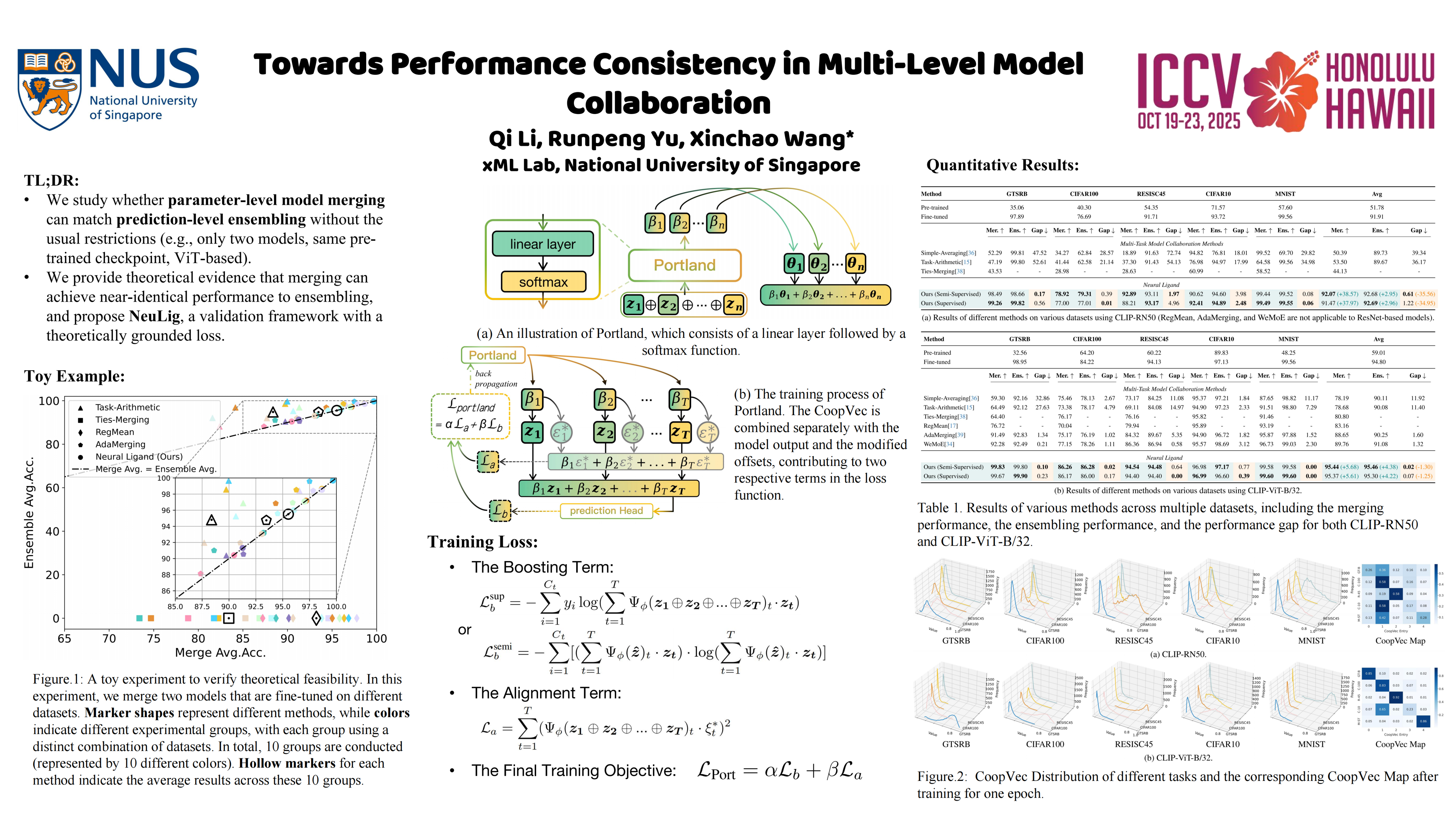 Parameter-level model merging is an emerging paradigm in multi-task learning with significant promise. Previous research has explored its connections with prediction-level model ensembling—commonly viewed as the upper bound for merging—to reveal the potential of achieving performance consistency between the two. However, this observation relies on certain preconditions, such as being limited to two models, using ViT-based models, and all models are fine-tuned from the same pre-trained checkpoint. To further understand the intrinsic connections between these two paradigms, this paper explores an interesting possibility: If these restrictions are removed, can performance consistency still be achieved between merging and ensembling? To answer this question, we first theoretically establish a performance correlation between merging and ensembling. We find that even when previous restrictions are not met, there is still a way for model merging to attain a near-identical and superior performance similar to that of ensembling. To verify whether our findings are practical, we introduce a validation framework termed \underline{Neu}ral \underline{Lig}and (NeuLig). The learning process of NeuLig is meticulously designed with a specialized loss function supported by theoretical foundations. Experimental results demonstrate the robust resilience of NeuLig in terms of both model scale and the number of collaborating models. For instance, for the case involving 5 CLIP-ViT-B/32 models, parameter-level merging achieves the same performance as prediction-level ensembling (merging: 95.44\% vs. ensembling: 95.46\%).
