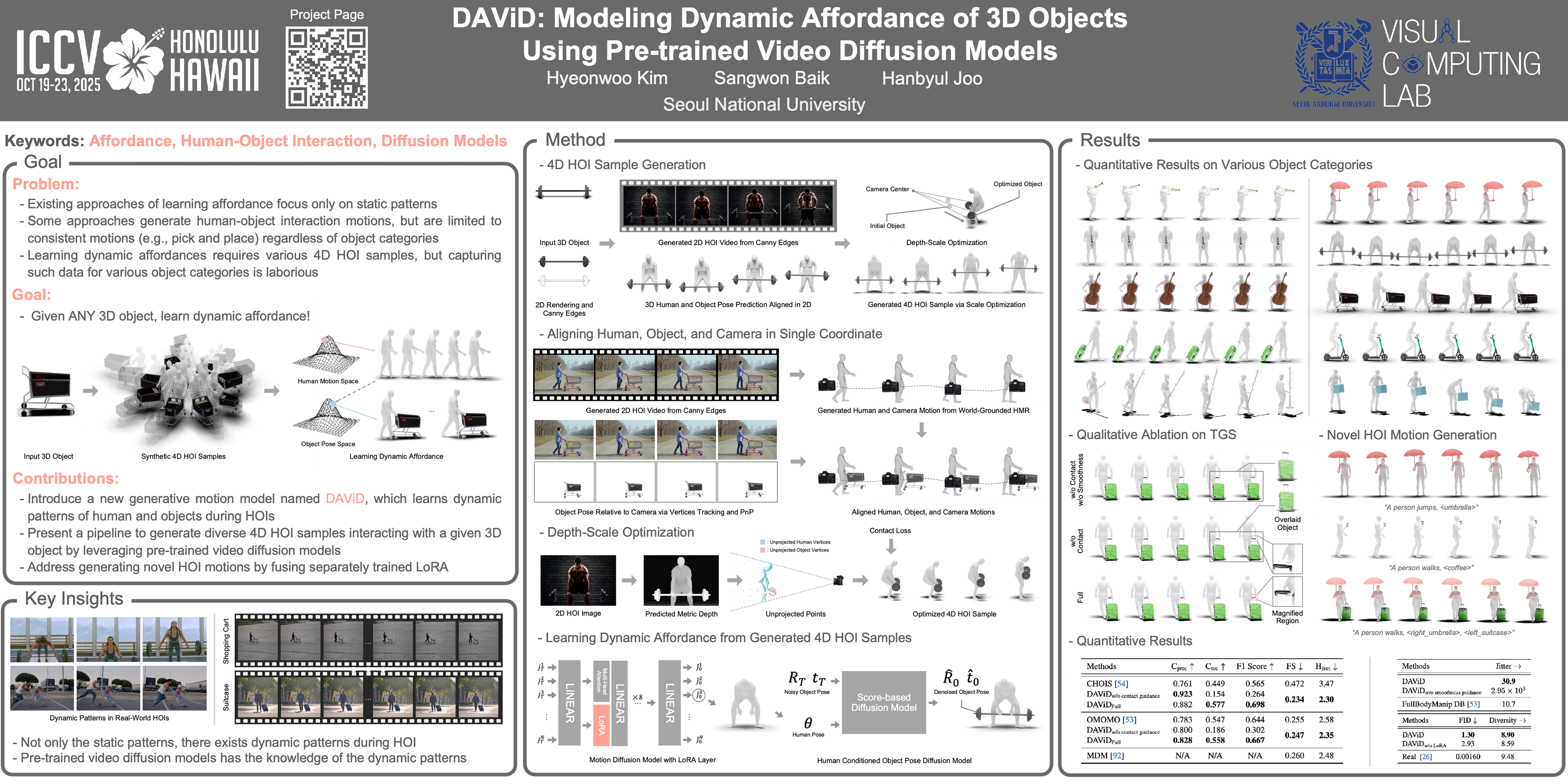 DAViD: Modeling Dynamic Affordance of 3D Objects Using Pre-trained Video Diffusion Models