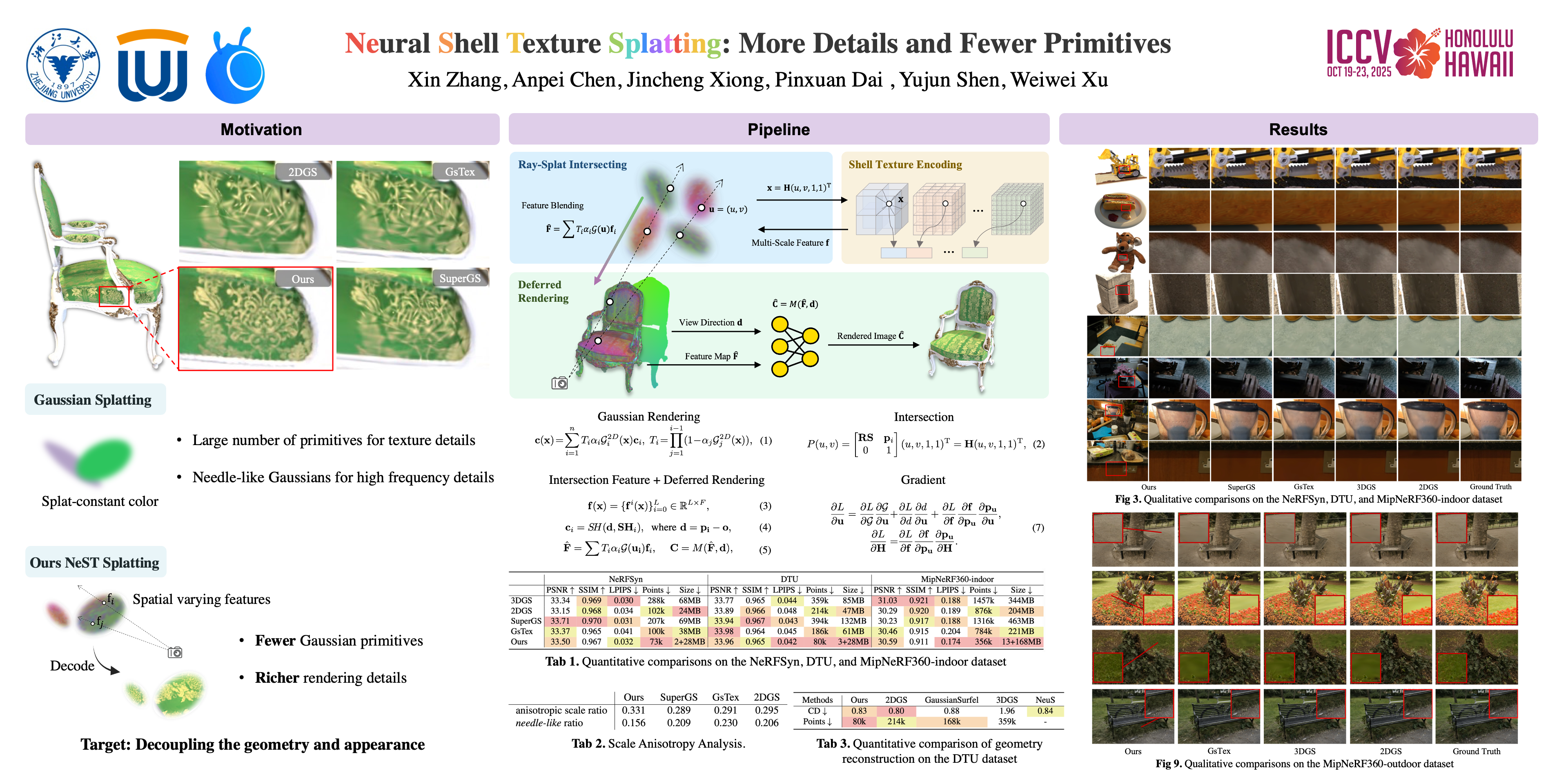 Neural Shell Texture Splatting: More Details and Fewer Primitives