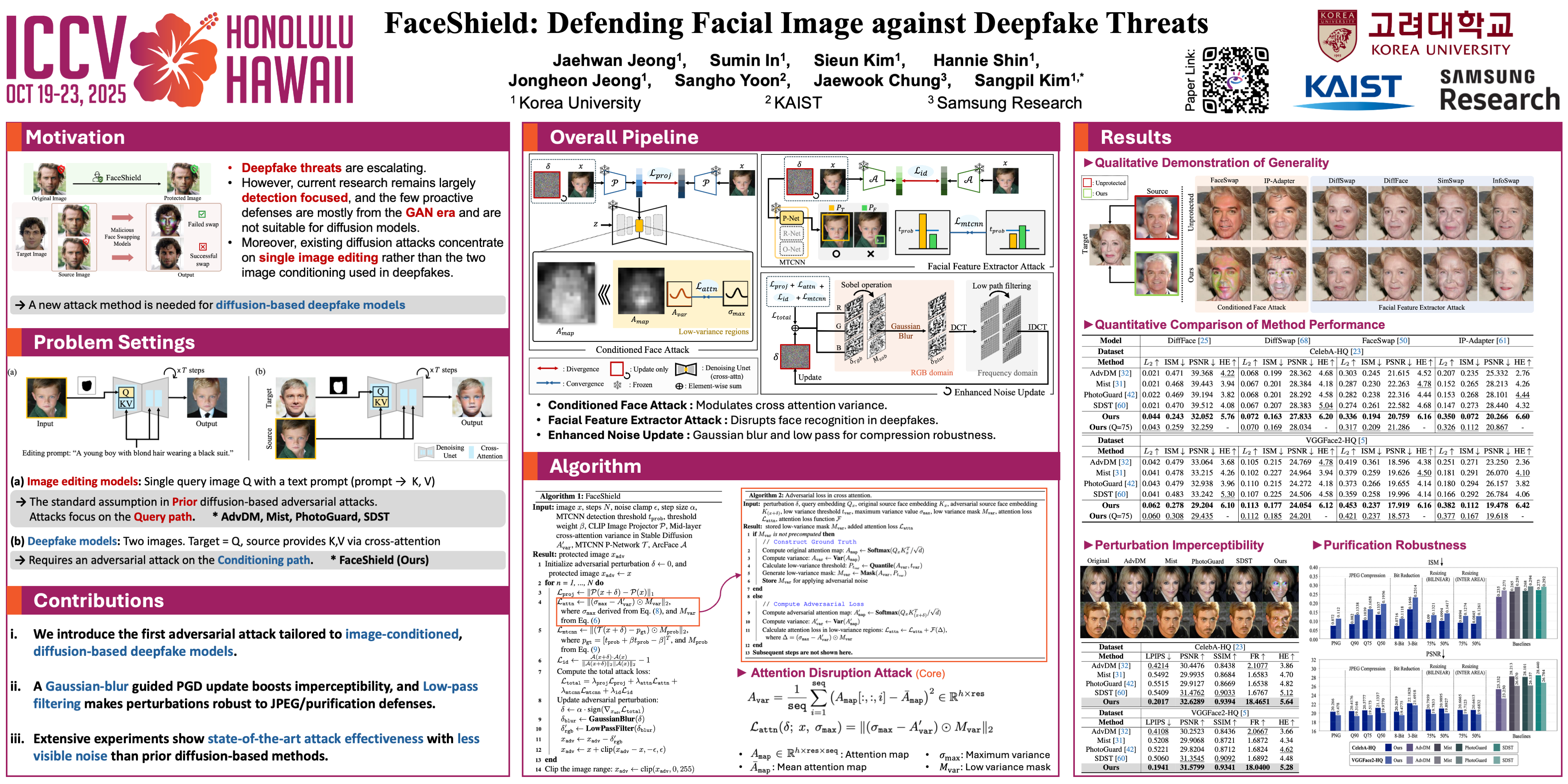 The rising use of deepfakes in criminal activities presents a significant issue, inciting widespread controversy. While numerous studies have tackled this problem, most primarily focus on deepfake detection.These reactive solutions are insufficient as a fundamental approach for crimes where authenticity is disregarded.Existing proactive defenses also have limitations, as they are effective only for deepfake models based on specific Generative Adversarial Networks (GANs), making them less applicable in light of recent advancements in diffusion-based models.In this paper, we propose a proactive defense method named FaceShield, which introduces novel defense strategies targeting deepfakes generated by Diffusion Models (DMs) and facilitates defenses on various existing GAN-based deepfake models through facial feature extractor manipulations. Our approach consists of three main components: (i) manipulating the attention mechanism of DMs to exclude protected facial features during the denoising process, (ii) targeting prominent facial feature extraction models to enhance the robustness of our adversarial perturbation, and (iii) employing Gaussian blur and low-pass filtering techniques to improve imperceptibility while enhancing robustness against JPEG distortion.Experimental results on the CelebA-HQ and VGGFace2-HQ datasets demonstrate that our method achieves state-of-the-art performance against the latest deepfake models based on DMs, while also exhibiting transferability to GANs and showcasing greater imperceptibility of noise along with enhanced robustness.