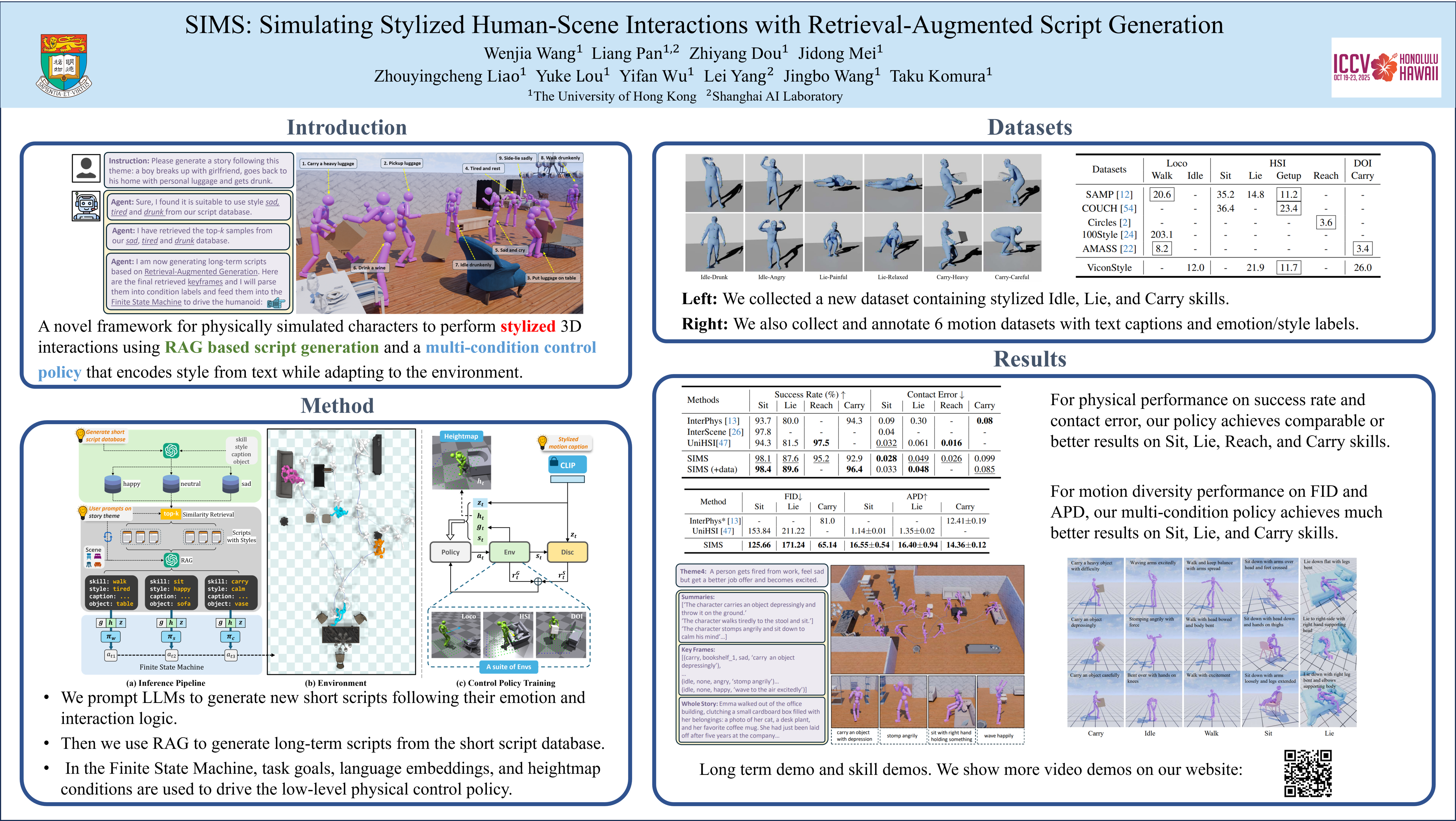 SIMS: Simulating Stylized Human-Scene Interactions with Retrieval-Augmented Script Generation