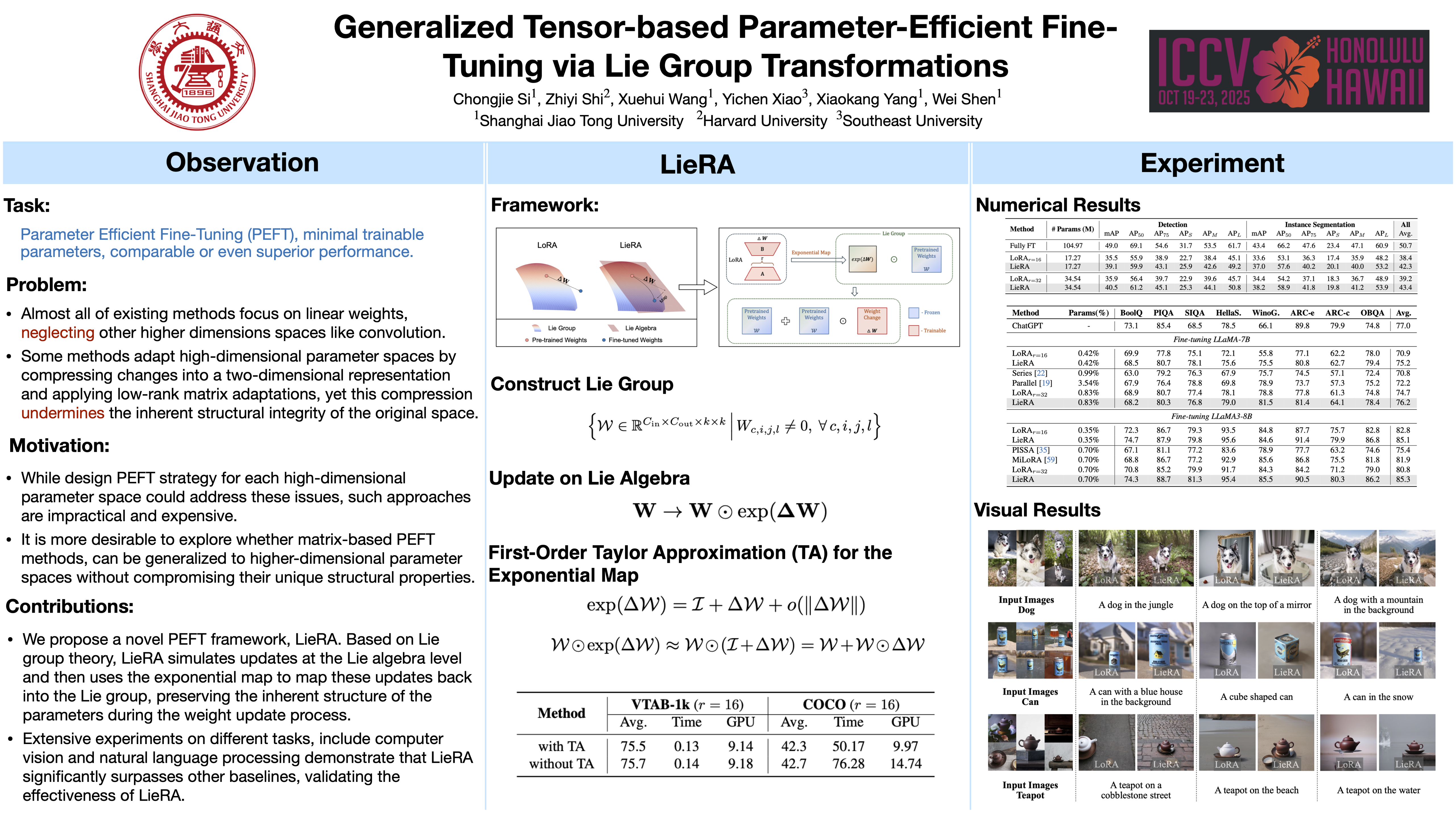 Adapting pre-trained foundation models for diverse downstream tasks is a core practice in artificial intelligence. However, the wide range of tasks and high computational costs make full fine-tuning impractical. To overcome this, parameter-efficient fine-tuning (PEFT) methods like LoRA have emerged and are becoming a growing research focus. Despite the success of these methods, they are primarily designed for linear layers, focusing on two-dimensional matrices while largely ignoring higher-dimensional parameter spaces like convolutional kernels. Moreover, directly applying these methods to higher-dimensional parameter spaces often disrupts their structural relationships. Given the rapid advancements in matrix-based PEFT methods, rather than designing a specialized strategy, we propose a generalization that extends matrix-based PEFT methods to higher-dimensional parameter spaces without compromising their structural properties. Specifically, we treat parameters as elements of a Lie group, with updates modeled as perturbations in the corresponding Lie algebra. These perturbations are mapped back to the Lie group through the exponential map, ensuring smooth, consistent updates that preserve the inherent structure of the parameter space. Extensive experiments on computer vision and natural language processing validate the effectiveness and versatility of our approach, demonstrating clear improvements over existing methods.