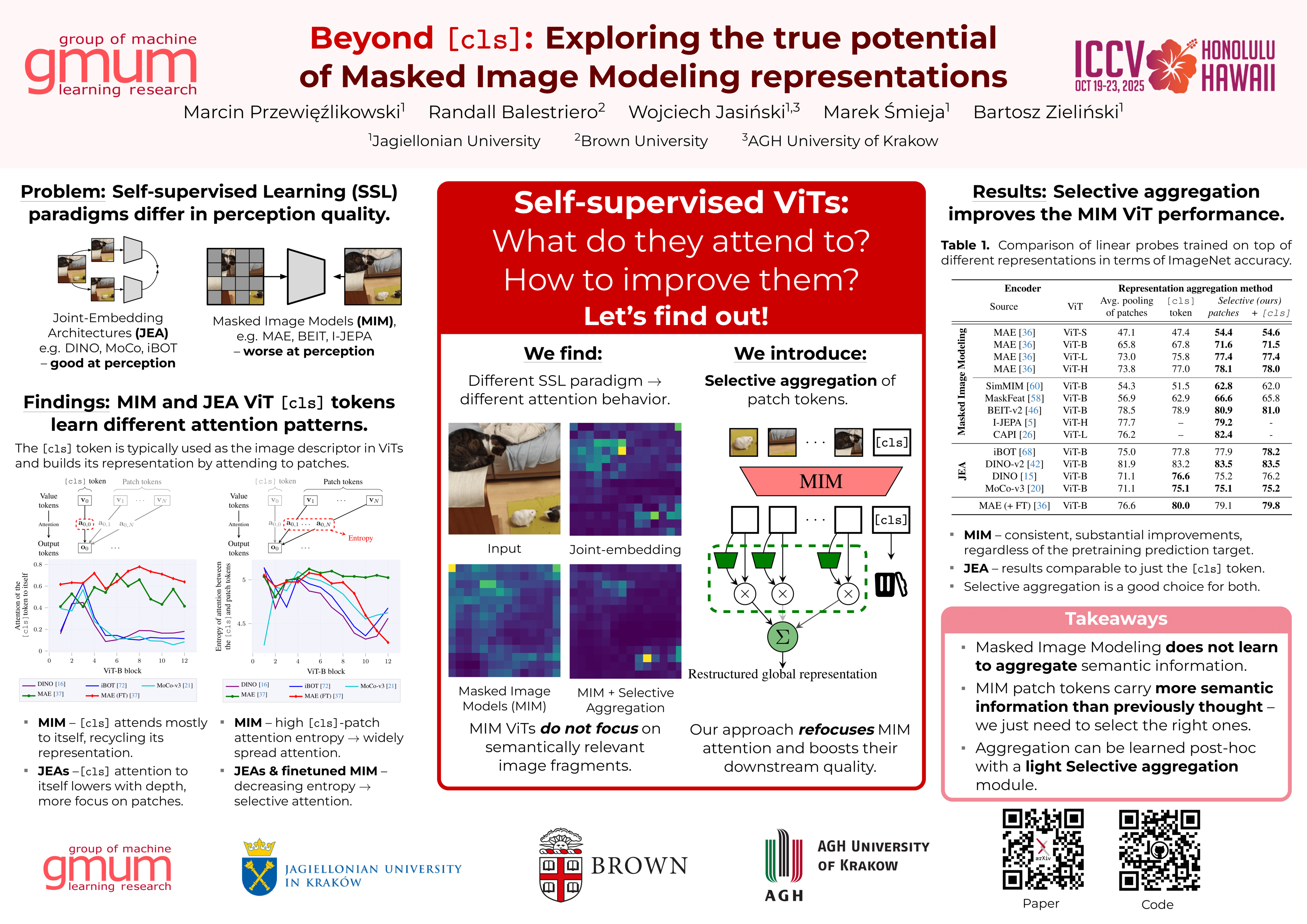 Masked Image Modeling (MIM) has emerged as a promising approach for Self-Supervised Learning (SSL) of visual representations. However, the out-of-the-box performance of MIMs is typically inferior to competing approaches. Most users cannot afford fine-tuning due to the need for large amounts of data, high GPU consumption, and specialized user knowledge. Therefore, the practical use of MIM representations is limited. In this paper we ask what is the reason for the poor out-of-the-box performance of MIMs. Is it due to weaker features produced by MIM models, or is it due to suboptimal usage? Through detailed analysis, we show that attention in MIMs is spread almost uniformly over many patches, leading to ineffective aggregation by the [cls] token. Based on this insight, we propose Selective aggregation to better capture the rich semantic information retained in patch tokens, which significantly improves the out-of-the-box performance of MIM.