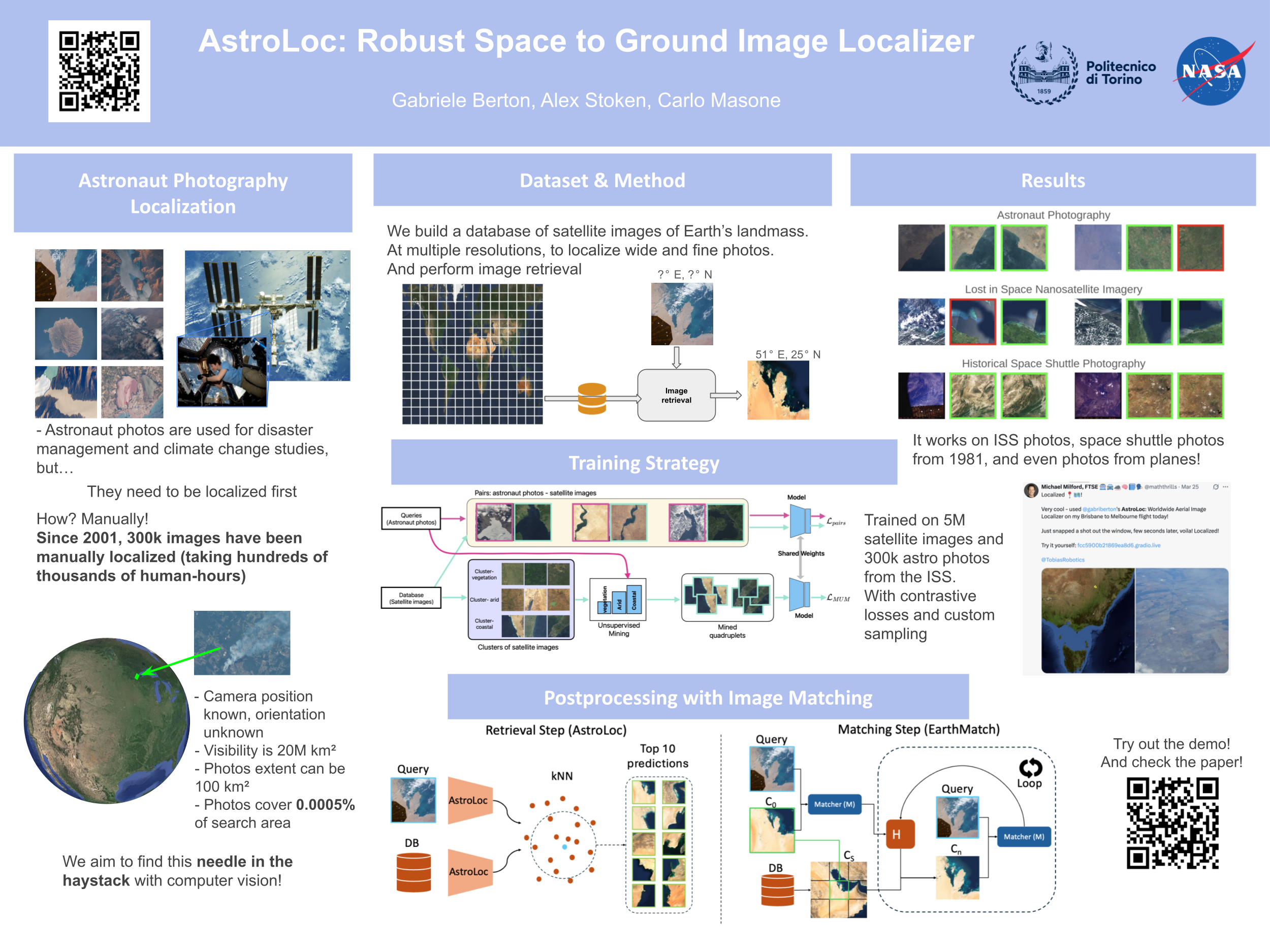 Thousands of photos of Earth are taken every day by astronauts from the International Space Station. The localization of these photos, which has been performed manually for decades, has recently been approached through image retrieval solutions: given an astronaut photo, the goal is to find its most similar match among a large database of geo-tagged satellite images, in a task called Astronaut Photography Localization (APL). Yet, existing APL approaches are trained only using satellite images, without taking advantage of the millions open-source astronaut photos. In this work we present the first APL pipeline capable of leveraging astronaut photos for training. We first produce full localization information for 300,000 manually weakly labeled astronaut photos through an automated pipeline, and then use these images to train a model, called AstroLoc. AstroLoc learns a robust representation of Earth's surface features through two objective functions: pairing astronaut photos with their matching satellite counterparts in a pairwise loss, and a second loss on clusters of satellite imagery weighted by their relevance to astronaut photography through unsupervised mining. AstroLoc achieves a staggering 35% average improvement in recall@1 over previous SOTA, reaching a recall@100 consistently over 99% for existing datasets. Moreover, without fine-tuning, AstroLoc provides excellent results for related tasks like the lost-in-space satellite problem and historical space imagery localization.