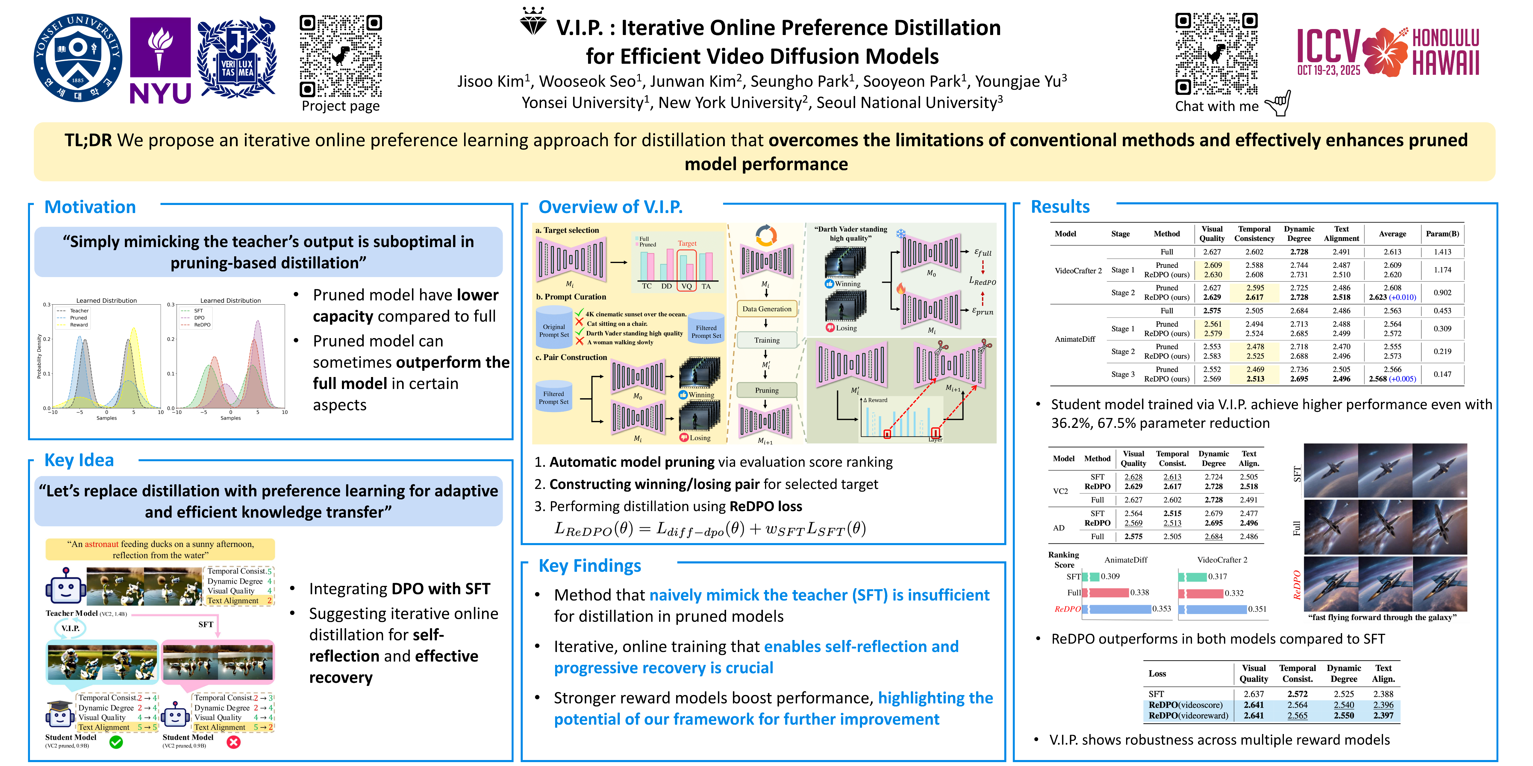 V.I.P. : Iterative Online Preference Distillation for Efficient Video Diffusion Models