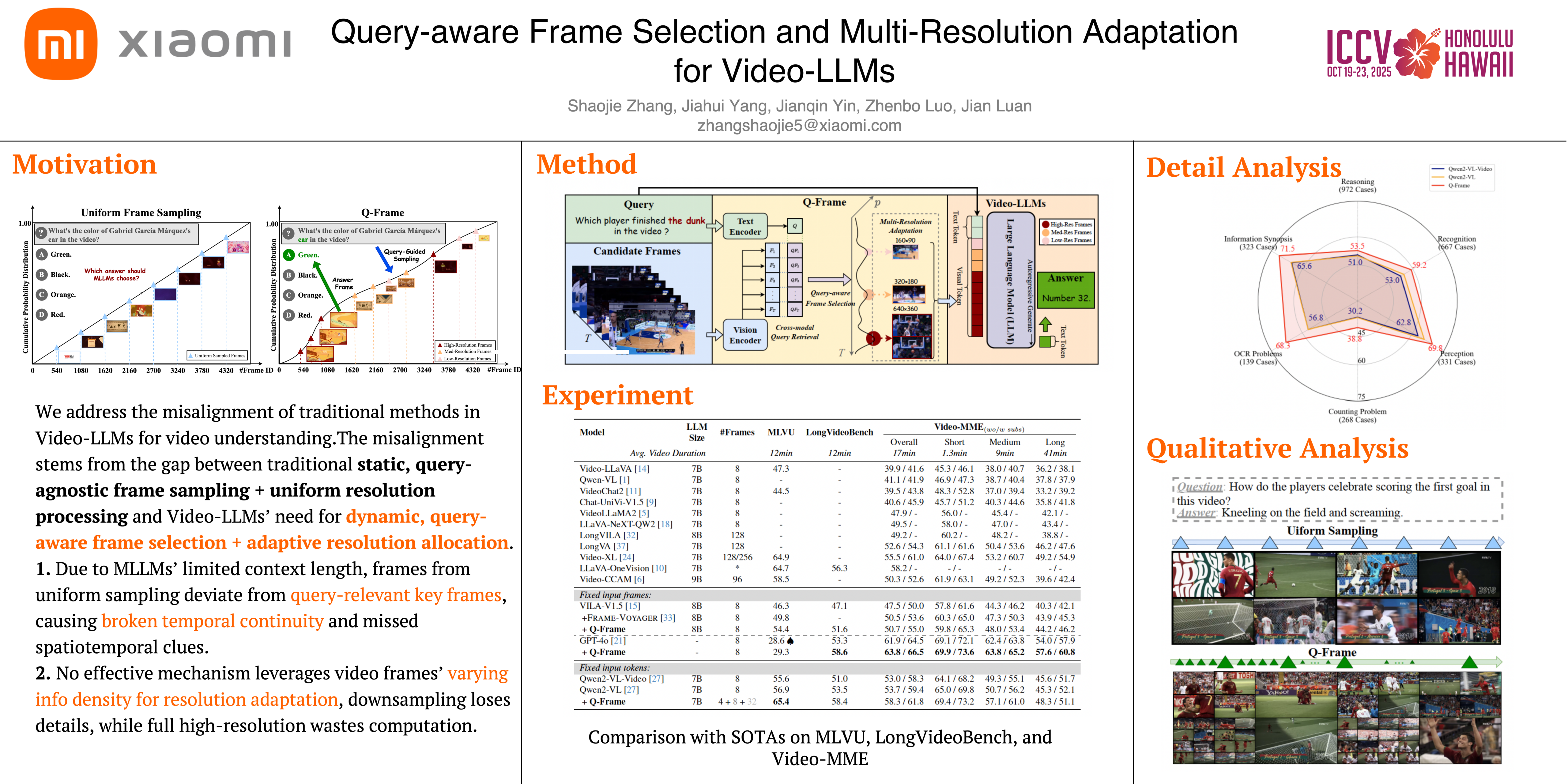 Multimodal Large Language Models (MLLMs) have demonstrated significant success in visual understanding tasks. However, challenges persist in adapting these models for video comprehension due to the large volume of data and temporal complexity. Existing Video-LLMs using uniform frame sampling often struggle to capture the query-related crucial spatiotemporal clues of videos effectively. In this paper, we introduce Q-Frame, a novel approach for adaptive frame selection and multi-resolution scaling tailored to the video's content and the specific query. Q-Frame employs a training-free, plug-and-play strategy generated by a text-image matching network like CLIP, utilizing the Gumbel-Max trick for efficient frame selection. Q-Frame allows Video-LLMs to process more frames without exceeding computational limits, thereby preserving critical temporal and spatial information. We demonstrate Q-Frame's effectiveness through extensive experiments on benchmark datasets, including MLVU, LongVideoBench, and Video-MME, illustrating its superiority over existing methods and its applicability across various video understanding tasks.