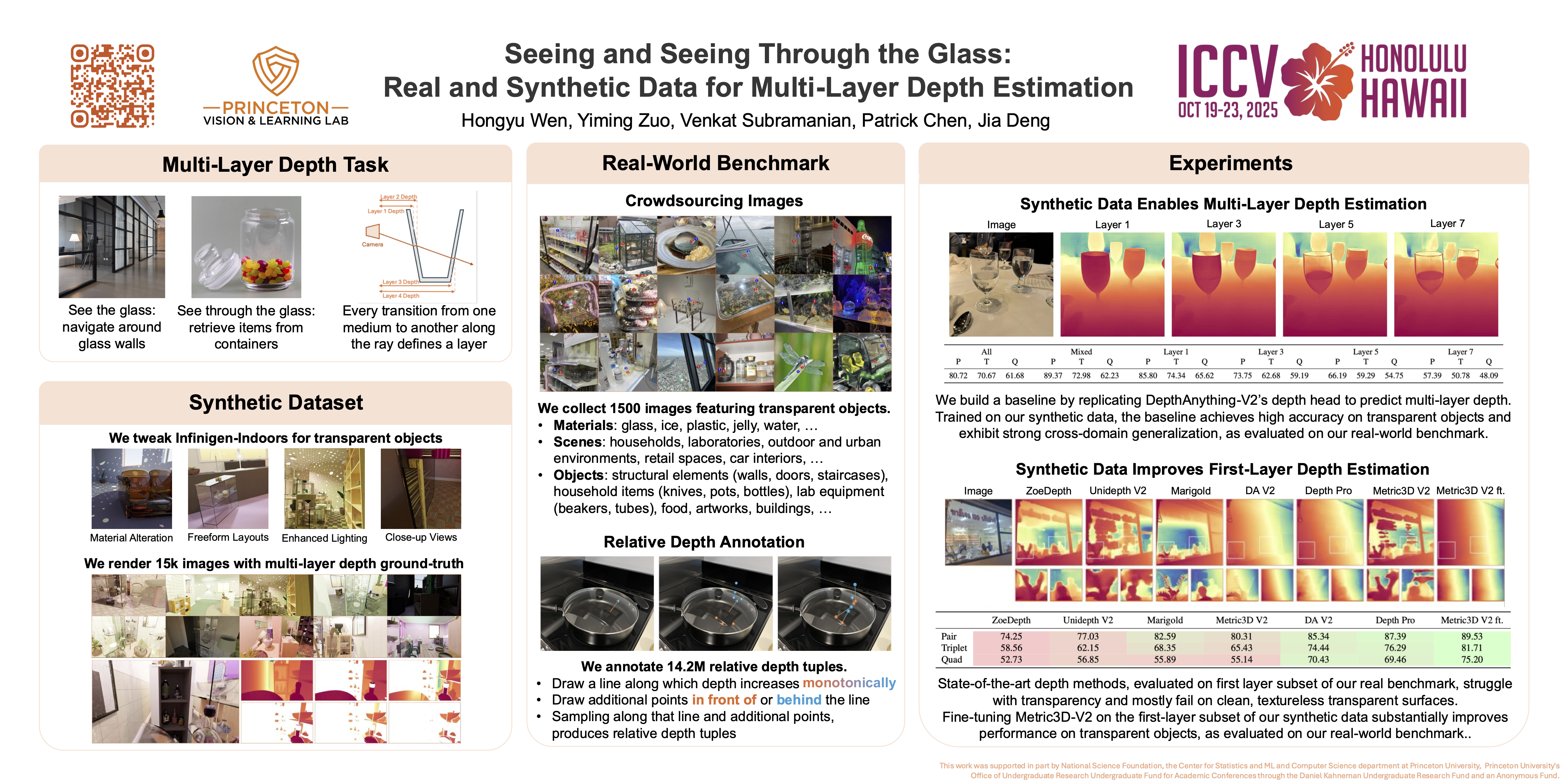 Transparent objects are common in daily life, and understanding their multi-layer depth information—perceiving both the transparent surface and the objects behind it—is crucial for real-world applications that interact with transparent materials.In this paper, we introduce LayeredDepth, the first dataset with multi-layer depth annotations, including a real-world benchmark and a synthetic data generator, to support the task of multi-layer depth estimation. Our real-world benchmark consists of 1,500 images from diverse scenes, and evaluating state-of-the-art depth estimation methods on it reveals that they struggle with transparent objects. The synthetic data generator is fully procedural and capable of providing training data for this task with an unlimited variety of objects and scene compositions. Using this generator, we create a synthetic dataset with 15,300 images. Baseline models training solely on this synthetic dataset produce good cross-domain multi-layer depth estimation. Fine-tuning state-of-the-art single-layer depth models on it substantially improves their performance on transparent objects, with quadruplet accuracy on our benchmark increased from 55.59% to 75.16%.