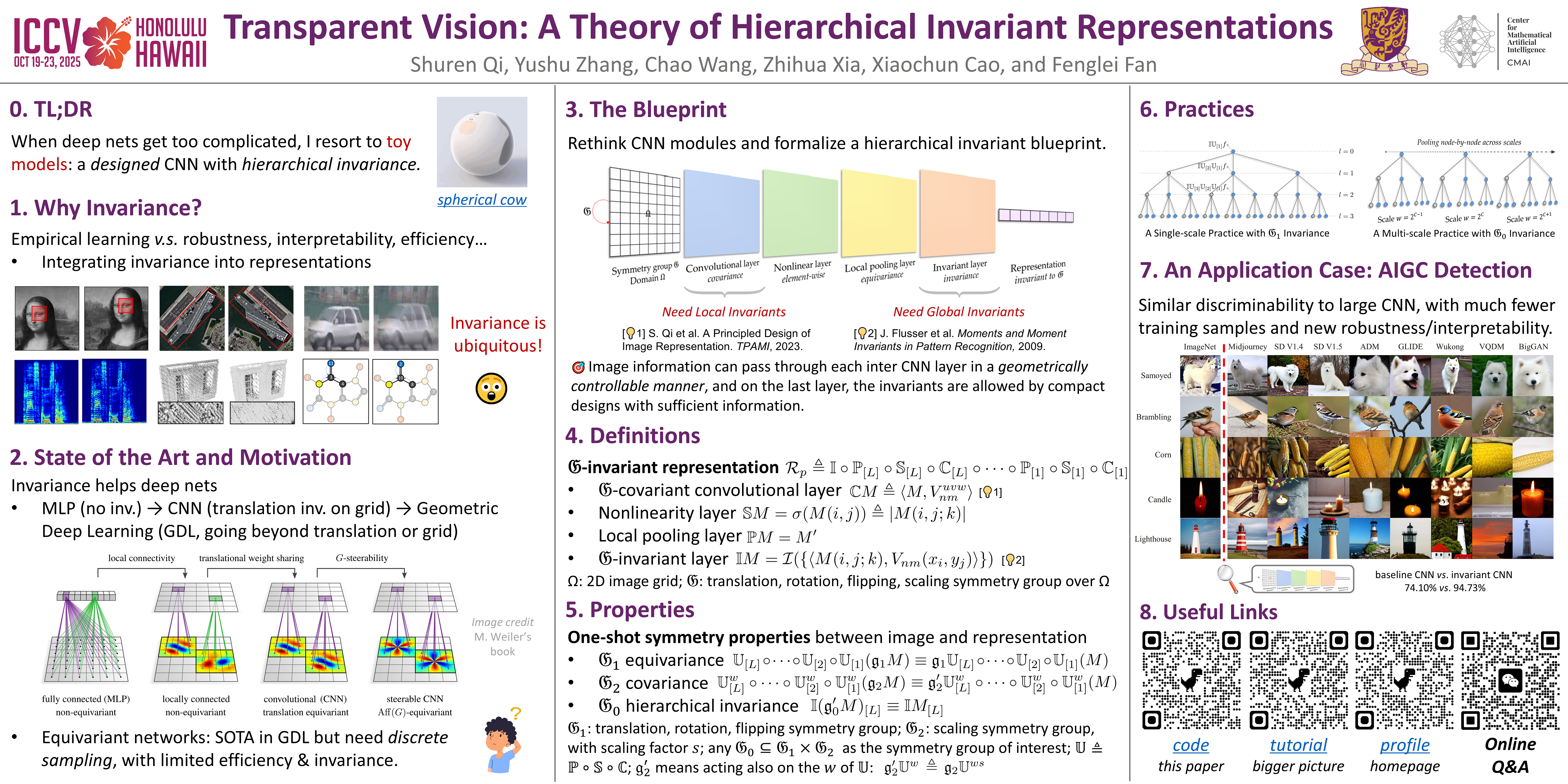 Developing robust and interpretable vision systems is a crucial step towards trustworthy artificial intelligence. One promising paradigm is to design transparent structures, e.g., geometric invariance, for fundamental representations. However, such invariants exhibit limited discriminability, limiting their applications in larger-scale tasks. For this open problem, we conduct a systematic investigation of hierarchical invariance, exploring this topic from theoretical, practical, and application perspectives. At the theoretical level, we show how to construct discriminative invariants with a Convolutional Neural Network (CNN)-like hierarchical architecture, yet in a fully transparent manner. The general blueprint, specific definitions, invariant properties, and numerical implementations are provided. At the practical level, we discuss how to customize this transparent framework into a given task. With the over-completeness, discriminative features w.r.t. the task can be adaptively formed in a Neural Architecture Search (NAS)-like manner. We demonstrate the above arguments with accuracy, invariance, and efficiency results on laboratory-style classification experiments. Furthermore, at the application level, our representations are explored in real-world forensic tasks on adversarial perturbations and generated content. Such applications reveal that our invariants exhibit competitive discriminability even in the era of deep learning. For robust and interpretable vision tasks at larger scales, hierarchical invariant representations can be considered as an effective alternative to traditional CNNs and invariants.