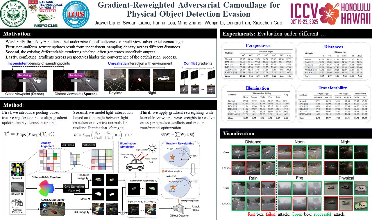 Gradient-Reweighted Adversarial Camouflage for Physical Object Detection Evasion