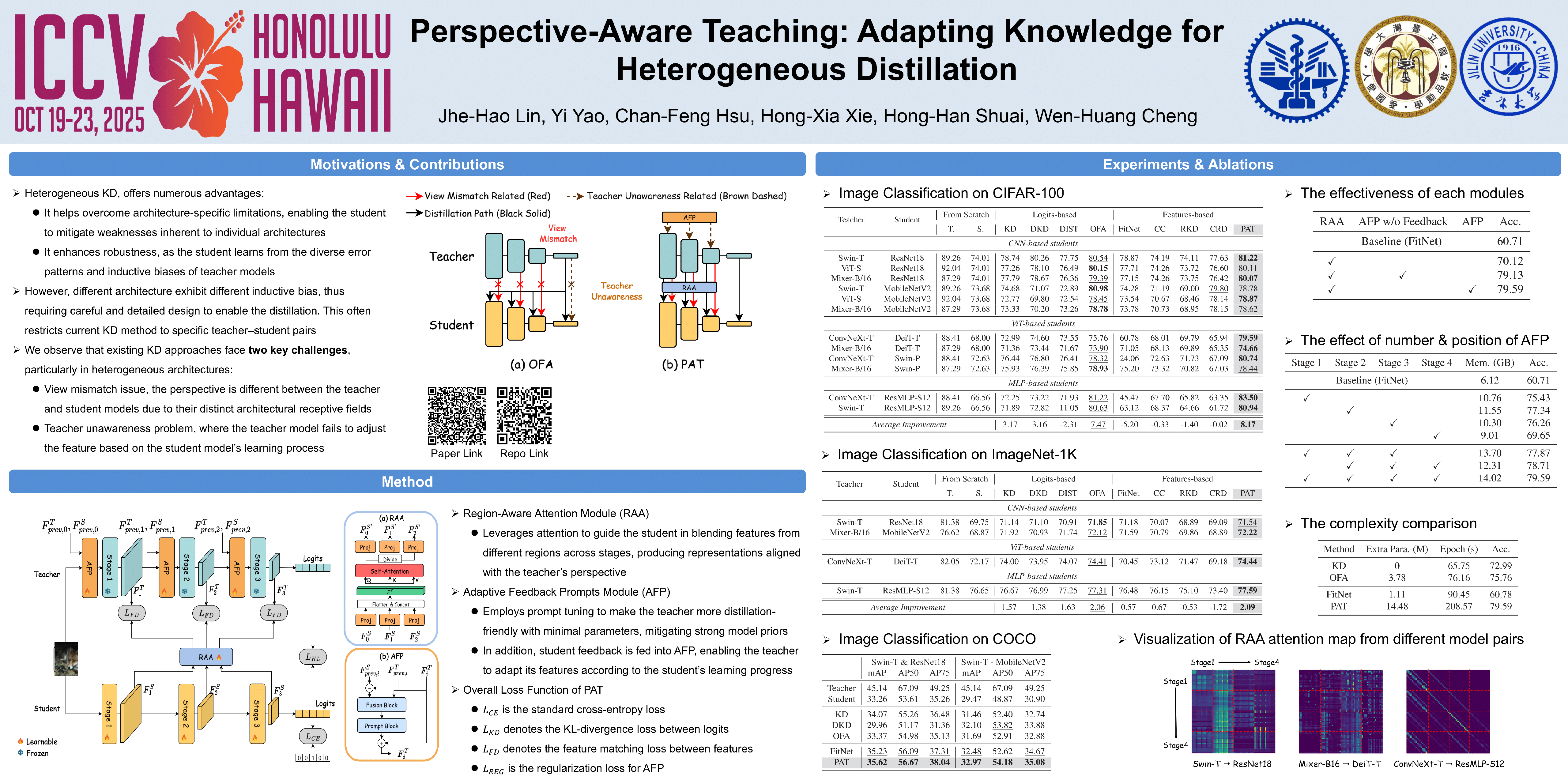 Knowledge distillation (KD) involves transferring knowledge from a pre-trained heavy teacher model to a lighter student model, thereby reducing the inference cost while maintaining comparable effectiveness. Prior KD techniques typically assume homogeneity between the teacher and student models. However, as technology advances, a wide variety of architectures have emerged, ranging from initial Convolutional Neural Networks (CNNs) to Vision Transformers (ViTs), and Multi-Level Perceptrons (MLPs). Consequently, developing a universal KD framework compatible with any architecture has become an important research topic. In this paper, we introduce a perspective-aware teaching (PAT) KD framework to enable feature distillation across diverse architectures. Our framework comprises two key components. First, we design prompt tuning blocks that incorporate student feedback, allowing teacher features to adapt to the student model's learning process. Second, we propose region-aware attention to mitigate the view mismatch problem between heterogeneous architectures. By leveraging these two modules, effective distillation of intermediate features can be achieved across heterogeneous architectures. Extensive experiments on CIFAR, ImageNet, and COCO demonstrate the superiority of the proposed method.