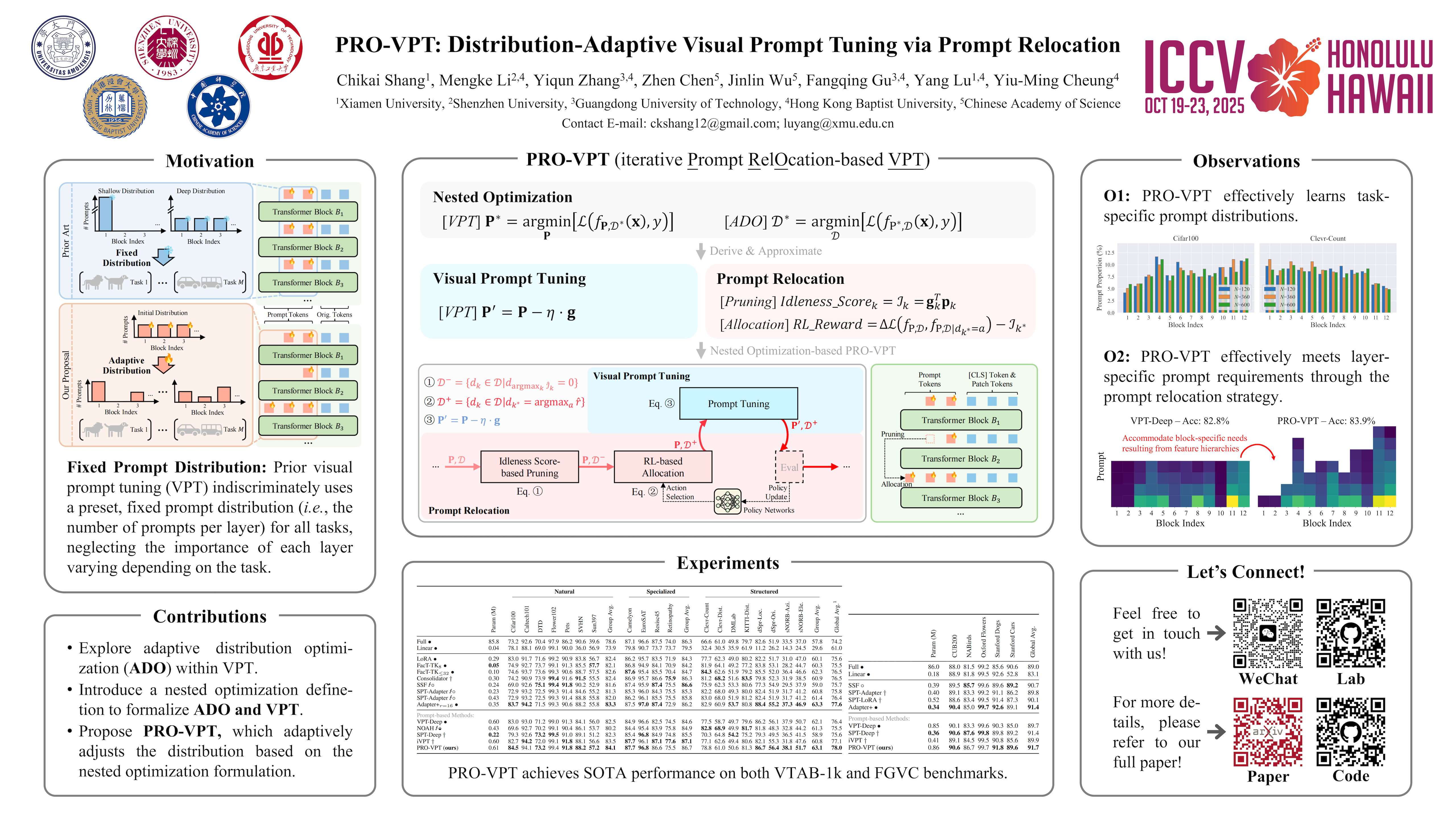 Visual prompt tuning (VPT) provides an efficient and effective solution for adapting pre-trained models to various downstream tasks by incorporating learnable prompts. However, most prior art indiscriminately applies a fixed prompt distribution across different tasks, neglecting the importance of each block differing depending on the task. In this paper, we investigate adaptive distribution optimization (ADO) by addressing two key questions: (1) How to appropriately and formally define ADO, and (2) How to design an adaptive distribution strategy guided by this definition? Through in-depth analysis, we provide an affirmative answer that properly adjusting the distribution significantly improves VPT performance, and further uncover a key insight that a nested relationship exists between ADO and VPT. Based on these findings, we propose a new VPT framework, termed PRO-VPT (iterative Prompt RelOcation-based VPT), which adaptively adjusts the distribution building upon a nested optimization formulation. Specifically, we develop a prompt relocation strategy for ADO derived from this formulation, comprising two optimization steps: identifying and pruning idle prompts, followed by determining the optimal blocks for their relocation. By iteratively performing prompt relocation and VPT, our proposal adaptively learns the optimal prompt distribution, thereby unlocking the full potential of VPT. Extensive experiments demonstrate that our proposal significantly outperforms state-of-the-art VPT methods, e.g., PRO-VPT surpasses VPT by 1.6% average accuracy, leading prompt-based methods to state-of-the-art performance on the VTAB-1k benchmark. The code is available at https://anonymous.4open.science/r/PRO-VPT.
