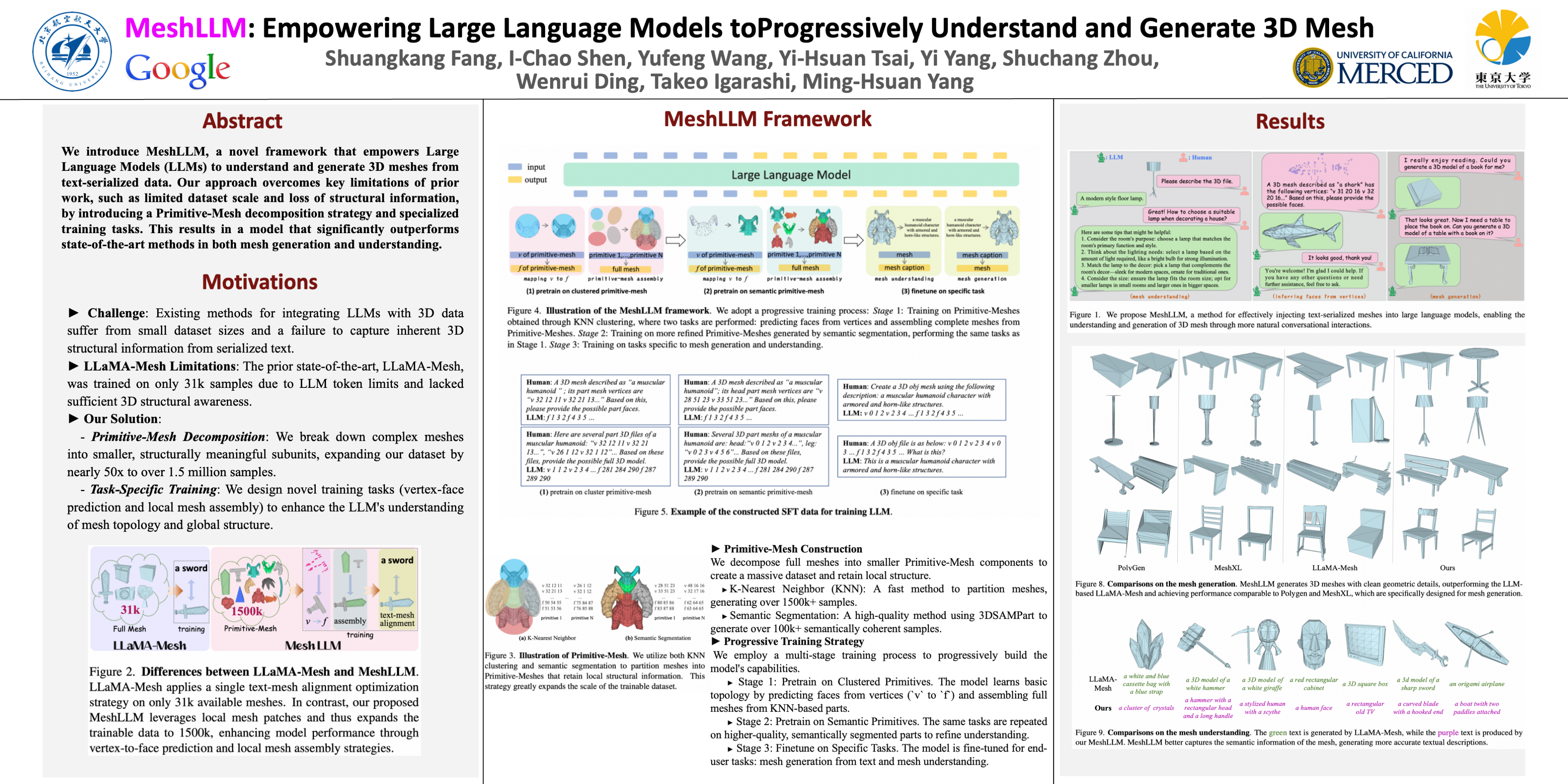 MeshLLM: Empowering Large Language Models to Progressively Understand and Generate 3D Mesh
