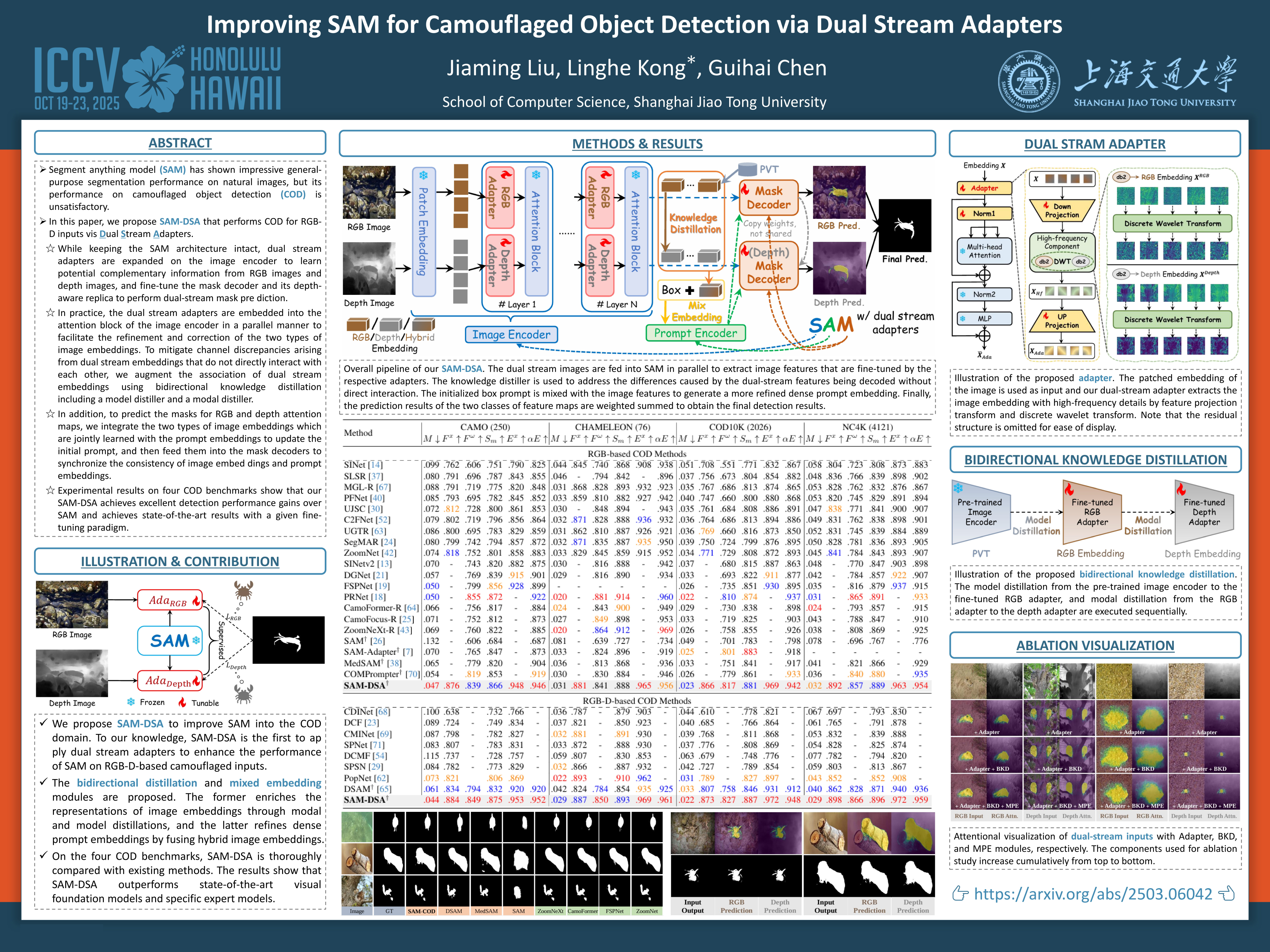 Improving SAM for Camouflaged Object Detection via Dual Stream Adapters