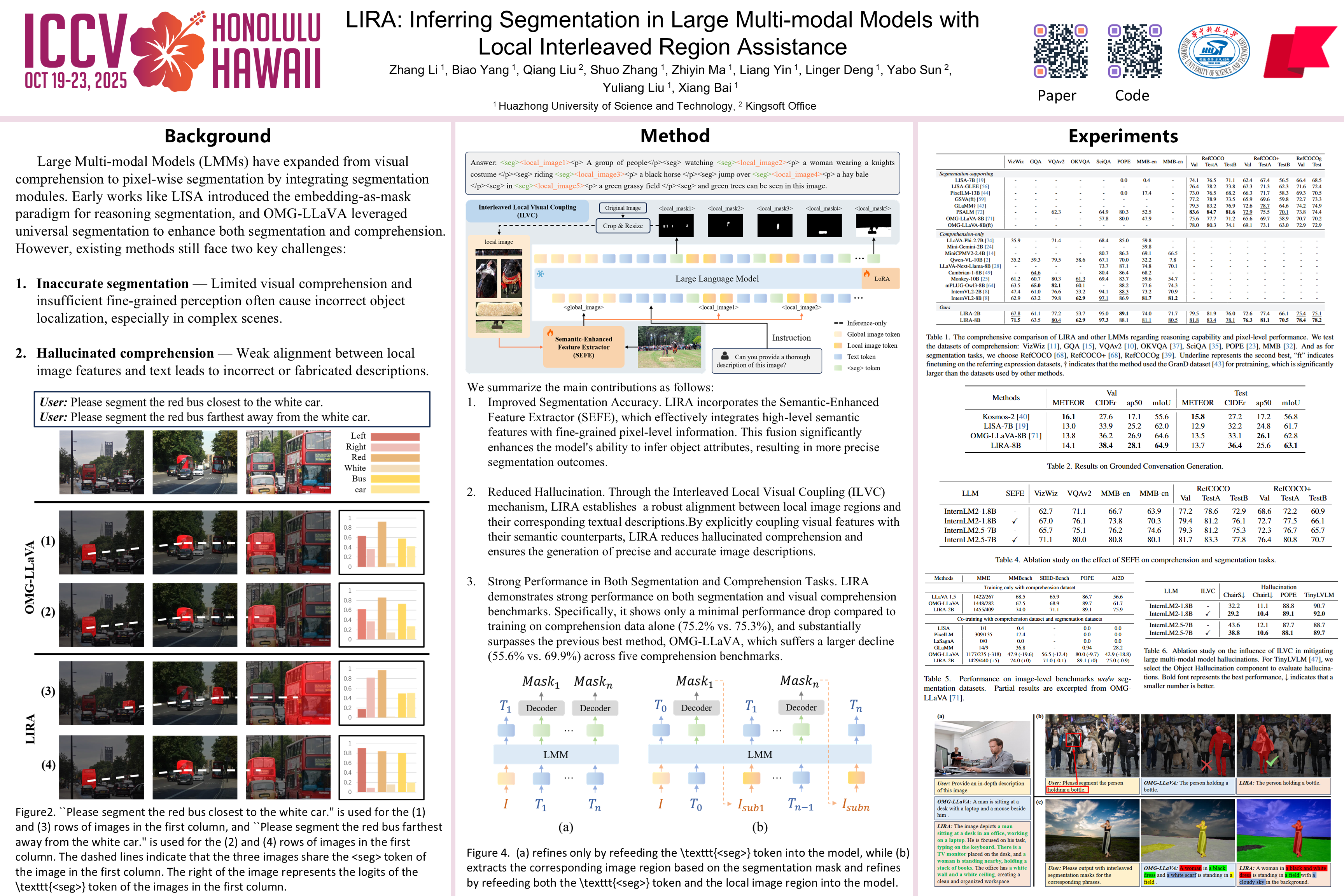 While large multi-modal models (LMMs) demonstrate promising capabilities in segmentation and comprehension, they still struggle with two limitations: inaccurate segmentation and hallucinated comprehension. These challenges stem primarily from constraints in weak visual comprehension and a lack of fine-grained perception. To alleviate these limitations, we propose LIRA, a framework that capitalizes on the complementary relationship between visual comprehension and segmentation via two key components: (1) Semantic-Enhanced Feature Extractor (SEFE) improves object attribute inference by fusing semantic and pixel-level features, leading to more accurate segmentation; (2) Interleaved Local Visual Coupling (ILVC) autoregressively generates local descriptions after extracting local features based on segmentation masks, offering fine-grained supervision to mitigate hallucinations. Furthermore, we find that the precision of object segmentation is positively correlated with the latent related semantics of the