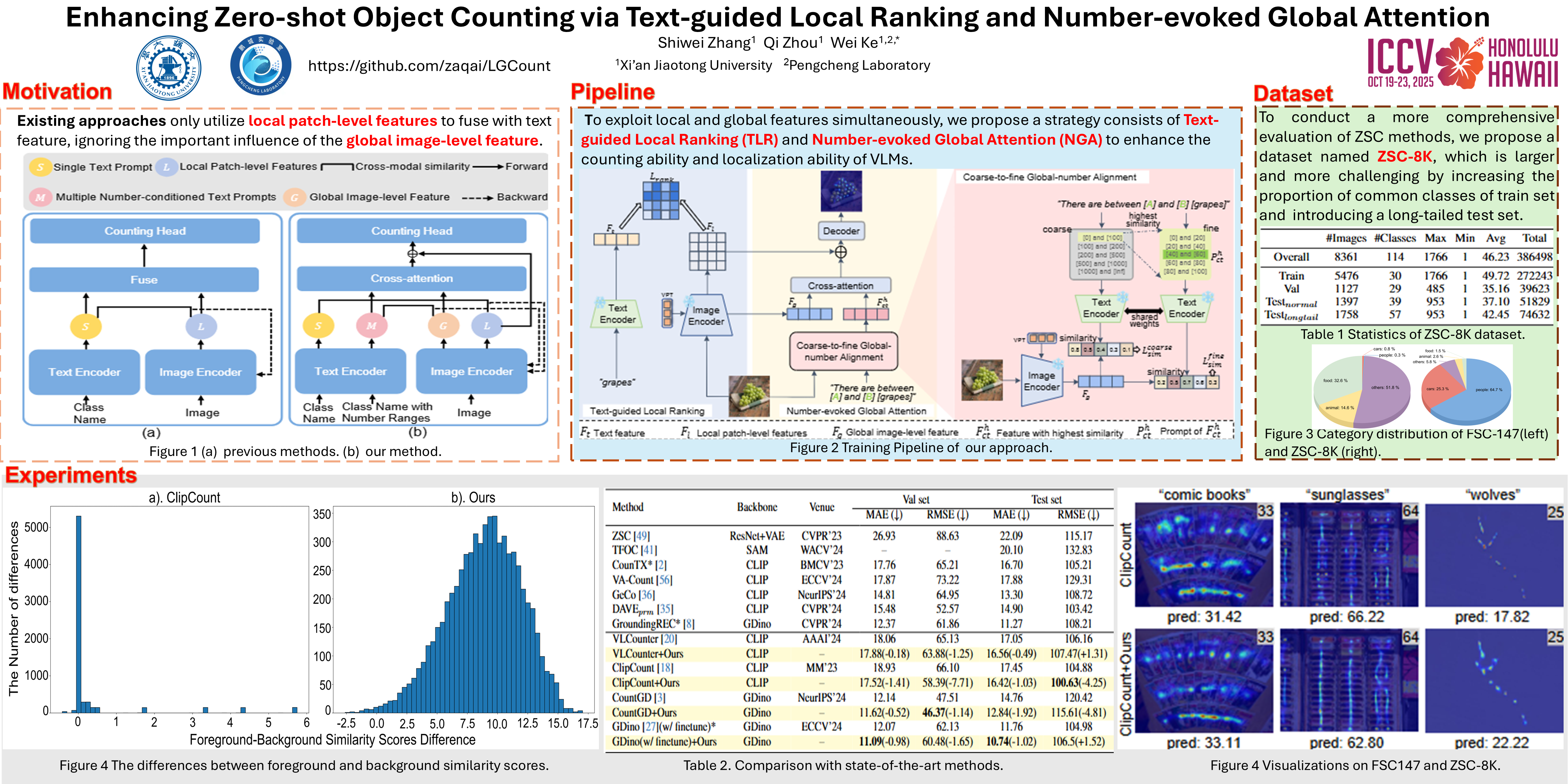 Text-guided zero-shot object counting leverages vision-language models (VLMs) to count objects of an arbitrary class given by a text prompt. Existing approaches for this challenging task only utilize local patch-level features to fuse with text feature, ignoring the important influence of the global image-level feature. In this paper, we propose a universal strategy that can exploit both local patch-level features and global image-level feature simultaneously. Specifically, to improve the localization ability of VLMs, we propose Text-guided Local Ranking. Depending on the prior knowledge that foreground patches have higher similarity with the text prompt, a new local-text rank loss is designed to increase the differences between the similarity scores of foreground and background patches which push foreground and background patches apart. To enhance the counting ability of VLMs, Number-evoked Global Attention is introduced to first align global image-level feature with multiple number-conditioned text prompts. Then, the one with the highest similarity is selected to compute cross-attention with the global image-level feature. Through extensive experiments on widely used datasets and methods, the proposed approach has demonstrated superior advancements in performance, generalization, and scalability. Furthermore, to better evaluate text-guided zero-shot object counting methods, we propose a dataset named ZSC-8K, which is larger and more challenging, to establish a new benchmark. Codes and ZSC-8K dataset will be available.