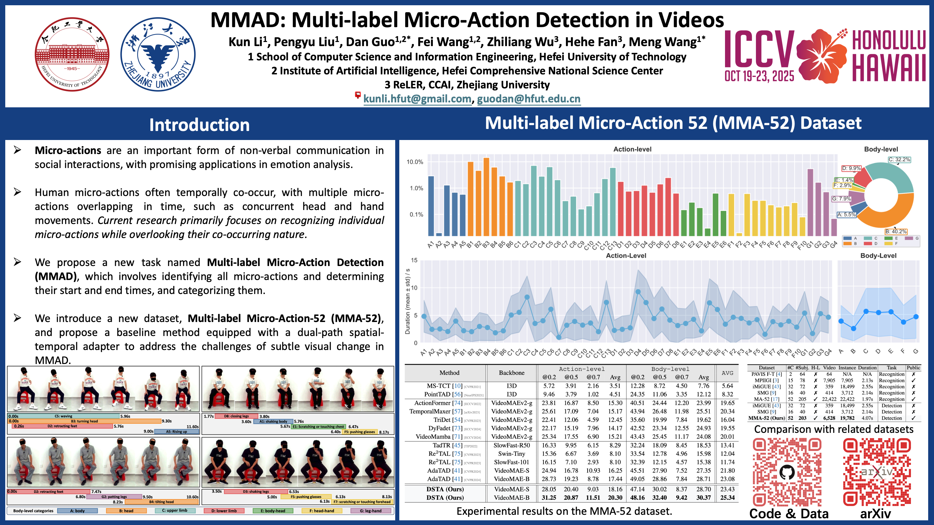 Human body actions are an important form of non-verbal communication in social interactions. This paper specifically focuses on a subset of body actions known as micro-actions, which are subtle, low-intensity body movements with promising applications in human emotion analysis. In real-world scenarios, human micro-actions often temporally co-occur, with multiple micro-actions overlapping in time, such as concurrent head and hand movements. However, current research primarily focuses on recognizing individual micro-actions while overlooking their co-occurring nature. To address this gap, we propose a new task named Multi-label Micro-Action Detection (MMAD), which involves identifying all micro-actions in a given short video, determining their start and end times, and categorizing them. Accomplishing this requires a model capable of accurately capturing both long-term and short-term action relationships to detect multiple overlapping micro-actions. To facilitate the MMAD task, we introduce a new dataset named Multi-label Micro-Action-52 (MMA-52) and propose a baseline method equipped with a dual-path spatial-temporal adapter to address the challenges of subtle visual change in MMAD. We hope that MMA-52 can stimulate research on micro-action analysis in videos and prompt the development of spatio-temporal modeling in human-centric video understanding.