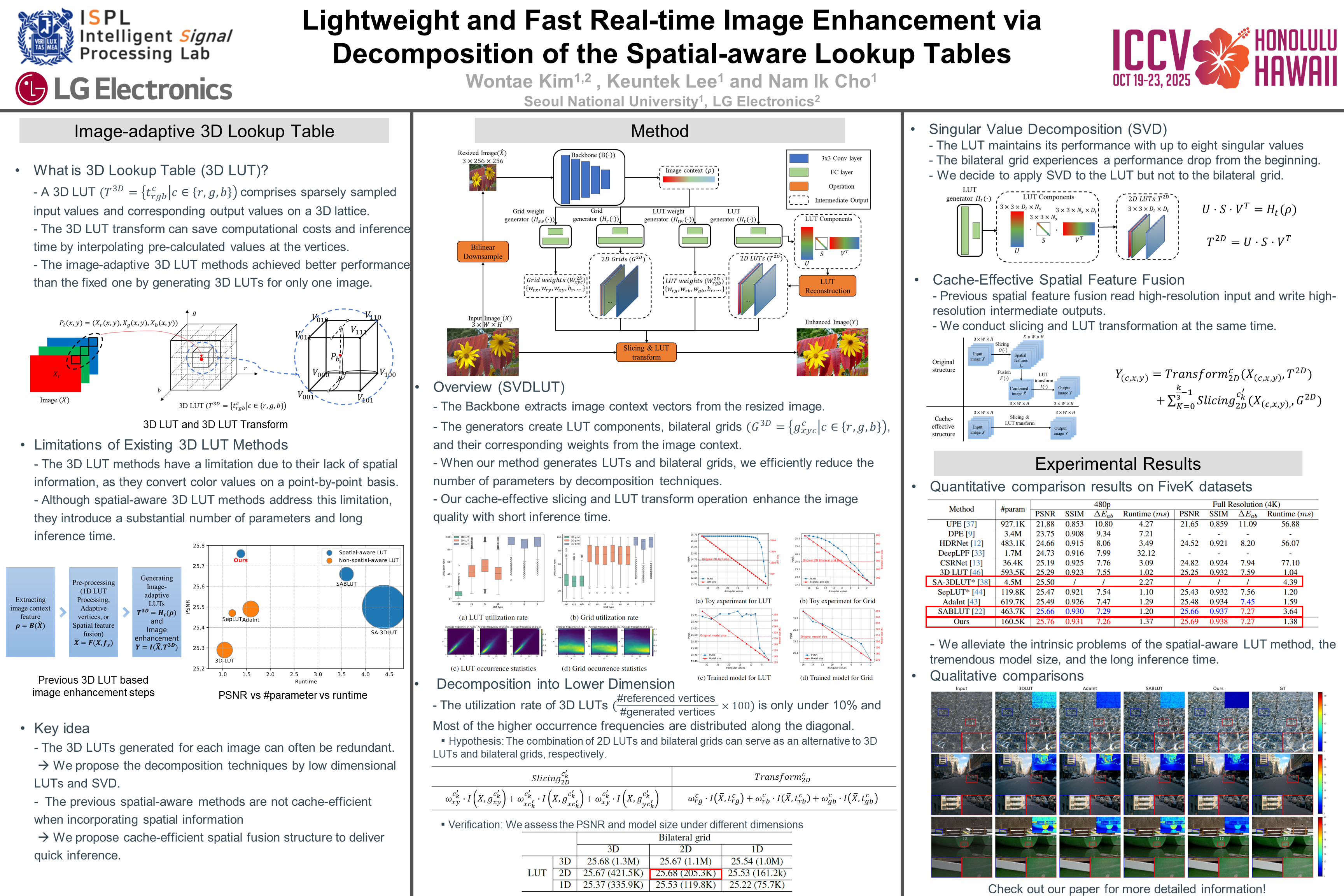 Lightweight and Fast Real-time Image Enhancement via Decomposition of the Spatial-aware Lookup Tables