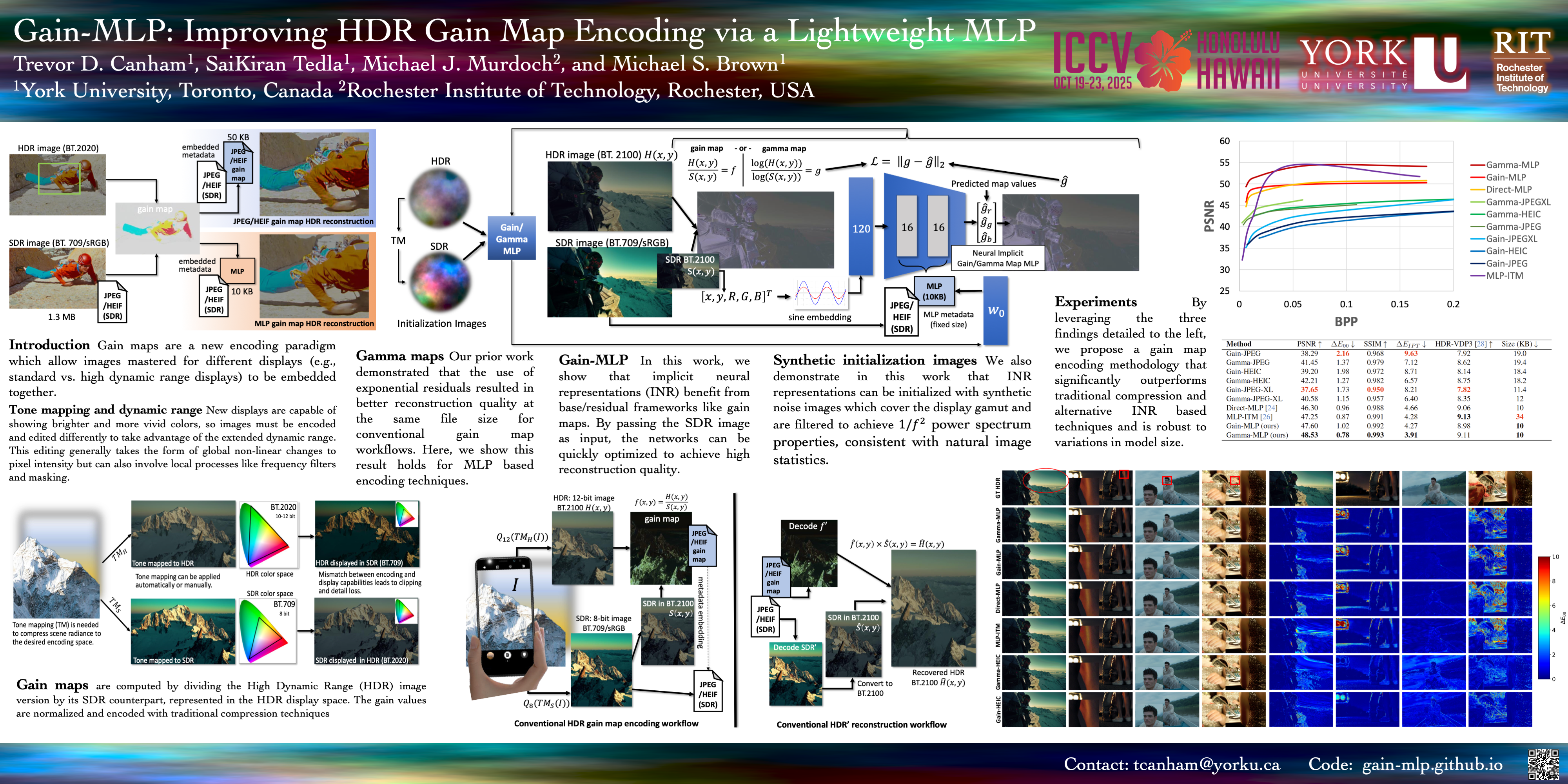 While most images shared on the web and social media platforms are encoded in standard dynamic range (SDR), many displays now can accommodate high dynamic range (HDR) content. Additionally, modern cameras can capture images in an HDR format but convert them to SDR to ensure maximum compatibility with existing workflows and legacy displays. To support both SDR and HDR, new encoding formats are emerging that store additional metadata in SDR images in the form of a gain map. When applied to the SDR image, the gain map recovers the HDR version of the image as needed. These gain maps, however, are typically down-sampled and encoded using standard image compression, such as JPEG and HEIC, which can result in unwanted artifacts. In this paper, we propose to use a lightweight multi-layer perceptron (MLP) network to encode the gain map. The MLP is optimized using the SDR image information as input and provides superior performance in terms of HDR reconstruction. Moreover, the MLP-based approach uses a fixed memory footprint (10 KB) and requires no additional adjustments to accommodate different image sizes or encoding parameters. We conduct extensive experiments on various MLP based HDR embedding strategies and demonstrate that our approach outperforms the current state-of-the-art.