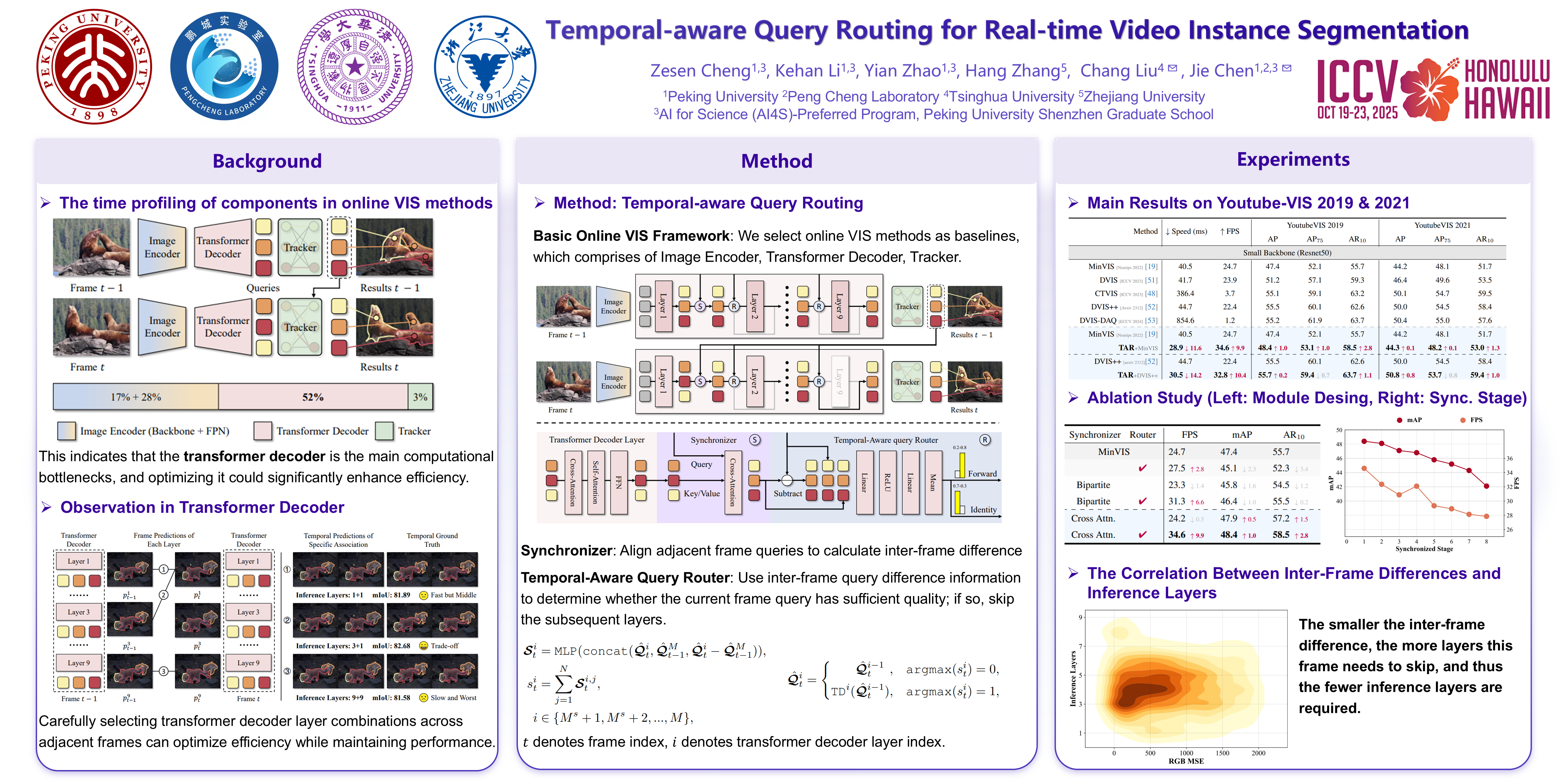 With the rise of applications such as embodied intelligence, developing high real-time online video instance segmentation (VIS) has become increasingly important. However, through time profiling of the components in advanced online VIS architecture (i.e., transformer-based architecture), we find that the transformer decoder significantly hampers the inference speed. Further analysis of the similarities between the outputs from adjacent frames at each transformer decoder layer reveals significant redundant computations within the transformer decoder. To address this issue, we introduce Temporal-Aware query Routing (TAR) mechanism. We embed it before each transformer decoder layer. By fusing the optimal queries from the previous frame, the queries output by the preceding decoder layer, and their differential information, TAR predicts a binary classification score and then uses an argmax operation to determine whether the current layer should be skipped. Experimental results demonstrate that integrating TAR into the baselines achieves significant efficiency gains (24.7 → 34.6 FPS for MinVIS, 22.4 → 32.8 FPS for DVIS++) while also improving performance (e.g., on YoutubeVIS 2019, 47.4 → 48.4 AP for MinVIS, 55.5 → 55.7 AP for DVIS++). Furthermore, our analysis of the TAR mechanism shows that the number of skipped layers increases as the differences between adjacent video frames decrease, which suggests that our method effectively utilizes inter-frame differences to reduce redundant computations in the transformer decoder.