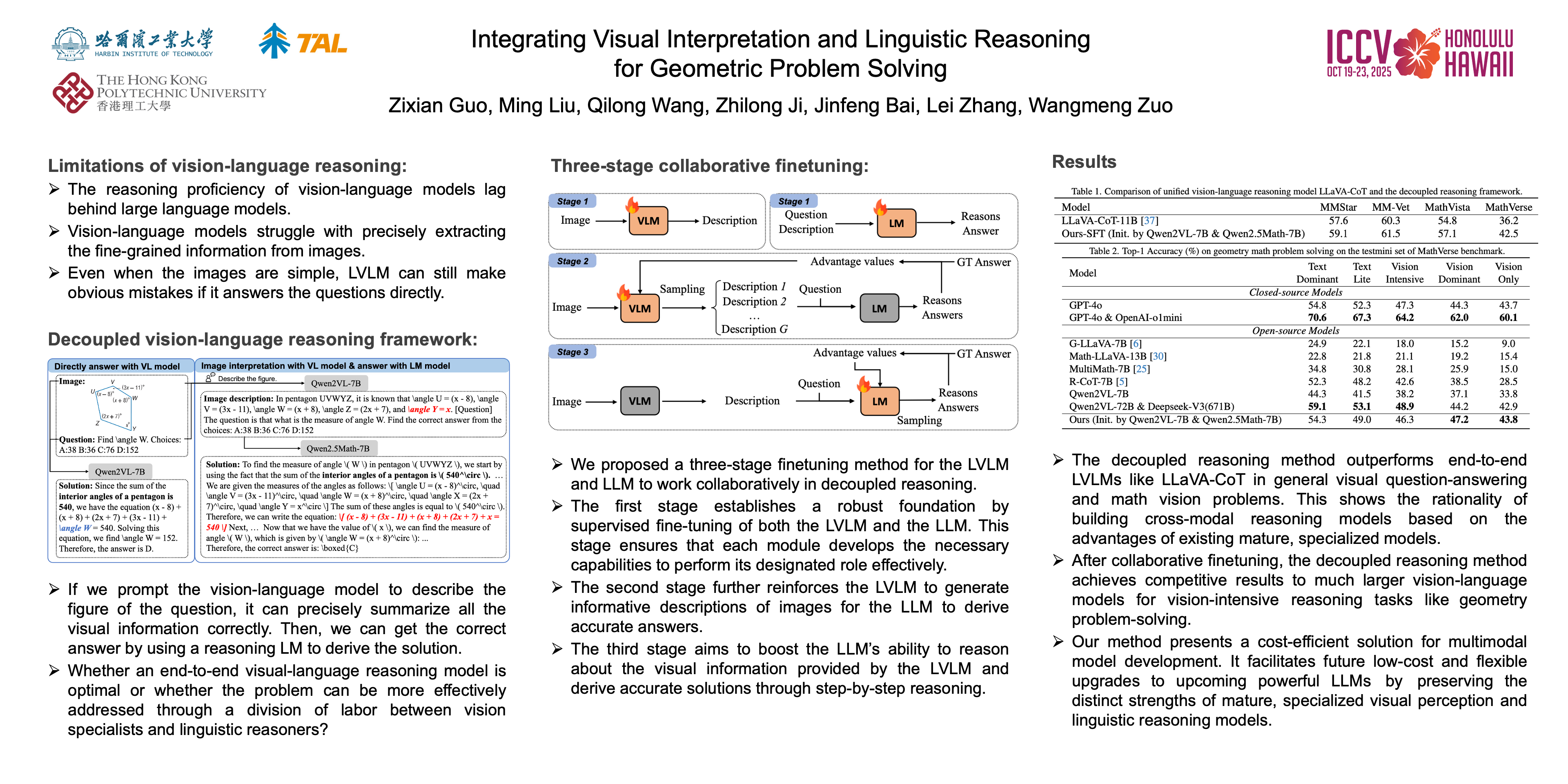 Integrating Visual Interpretation and Linguistic Reasoning for Geometric Problem Solving