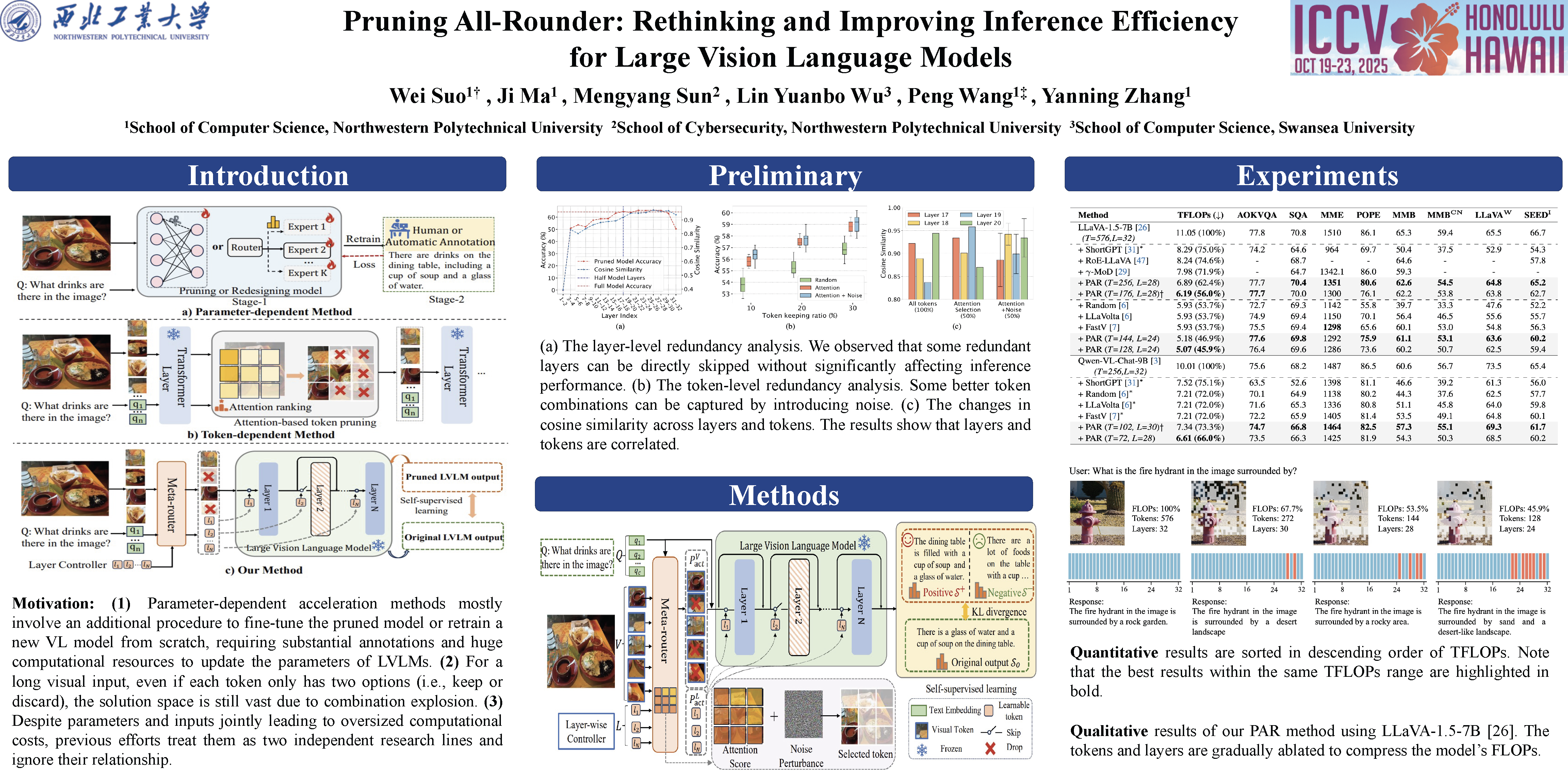 Although Large Vision-Language Models (LVLMs) have achieved impressive results, their high computational costs pose a significant barrier to wide application. To enhance inference efficiency, most existing approaches can be categorized as parameter-dependent or token-dependent strategies to reduce computational demands. However, parameter-dependent methods require retraining LVLMs to recover performance while token-dependent strategies struggle to consistently select the most relevant tokens. In this paper, we systematically analyze the above challenges and provide a series of valuable insights for inference acceleration. Based on these findings, we propose a novel framework, the Pruning All-Rounder (PAR). Different from previous works, PAR develops a meta-router to adaptively organize pruning flows across both tokens and layers. With a self-supervised learning manner, our method achieves a superior balance between performance and efficiency. Notably, PAR is highly flexible, offering multiple pruning versions to address a range of pruning scenarios. The code for this work will be made publicly available.