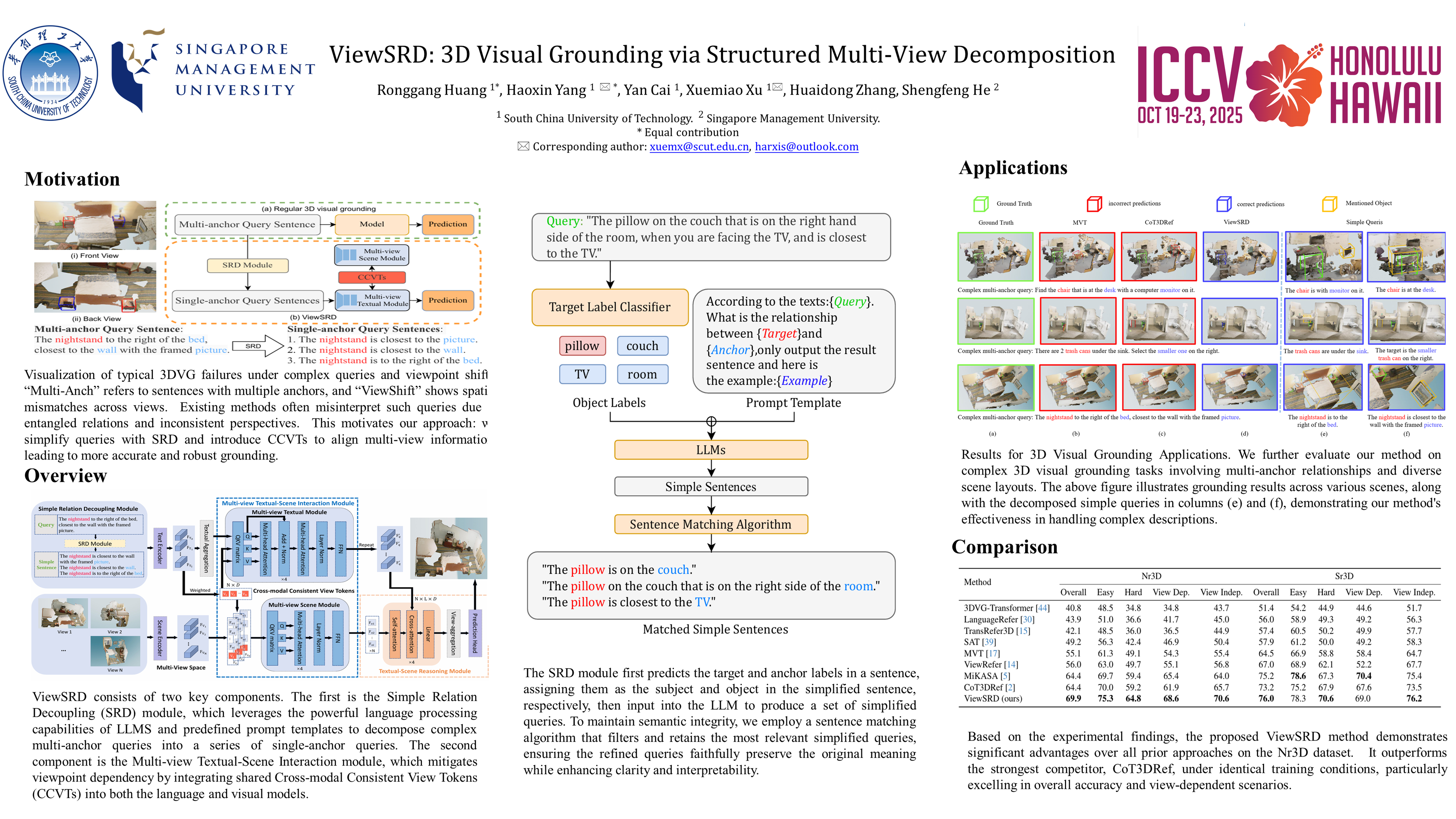 3D visual grounding aims to identify and localize objects in a 3D space based on textual descriptions. However, existing methods struggle with disentangling targets from anchors in complex multi-anchor queries and resolving inconsistencies in spatial descriptions caused by perspective variations.To tackle these challenges, we propose ViewSRD, a framework that formulates 3D visual grounding as a structured multi-view decomposition process. First, the Simple Relation Decoupling (SRD) module restructures complex multi-anchor queries into a set of targeted single-anchor statements, generating a structured set of perspective-aware descriptions that clarify positional relationships. These decomposed representations serve as the foundation for the Multi-view Textual-Scene Interaction (Multi-TSI) module, which integrates textual and scene features across multiple viewpoints using shared, Cross-modal Consistent View Tokens (CCVTs) to preserve spatial correlations. Finally, a Textual-Scene Reasoning module synthesizes multi-view predictions into a unified and robust 3D visual grounding.Experiments on 3D visual grounding datasets show that ViewSRD significantly outperforms state-of-the-art methods, particularly in complex queries requiring precise spatial differentiation.