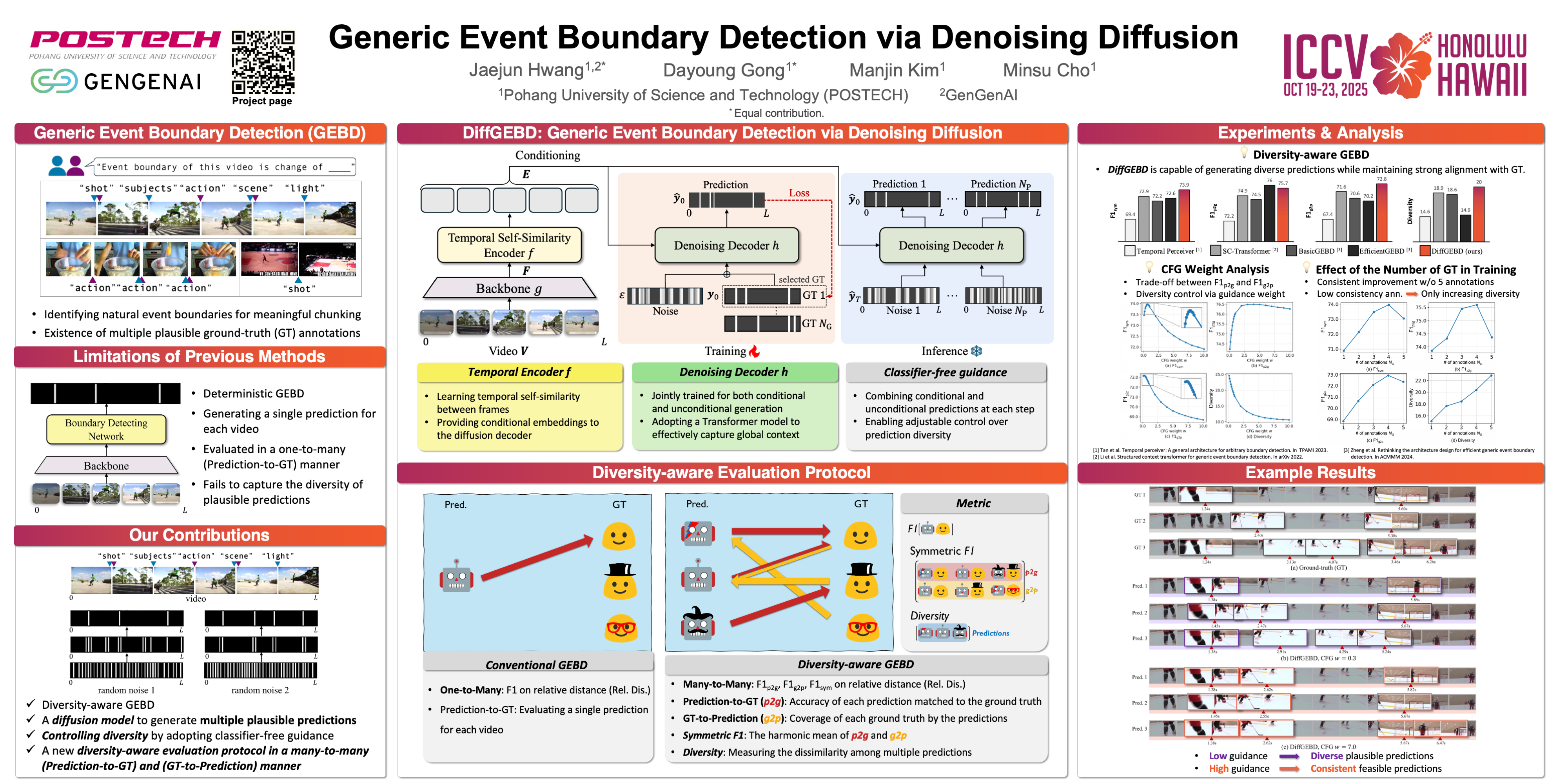 Generic event boundary detection (GEBD) aims to identify natural boundaries in a video, segmenting it into distinct and meaningful chunks. Despite the inherent subjectivity of event boundaries, previous methods have focused on deterministic predictions, overlooking the diversity of plausible solutions.In this paper, we introduce a novel diffusion-based boundary detection model, dubbed DiffGEBD, that tackles the problem of GEBD from a generative perspective. The proposed model encodes relevant changes across adjacent frames via temporal self-similarity and then iteratively decodes random noise into plausible event boundaries being conditioned on the encoded features. Classifier-free guidance allows the degree of diversity to be controlled in denoising diffusion. In addition, we introduce a new evaluation metric to assess the quality of predictions considering both diversity and fidelity. Experiments show that our method achieves strong performance on two standard benchmarks, TAPOS and Kinetics-GEBD, generating diverse and plausible event boundaries.