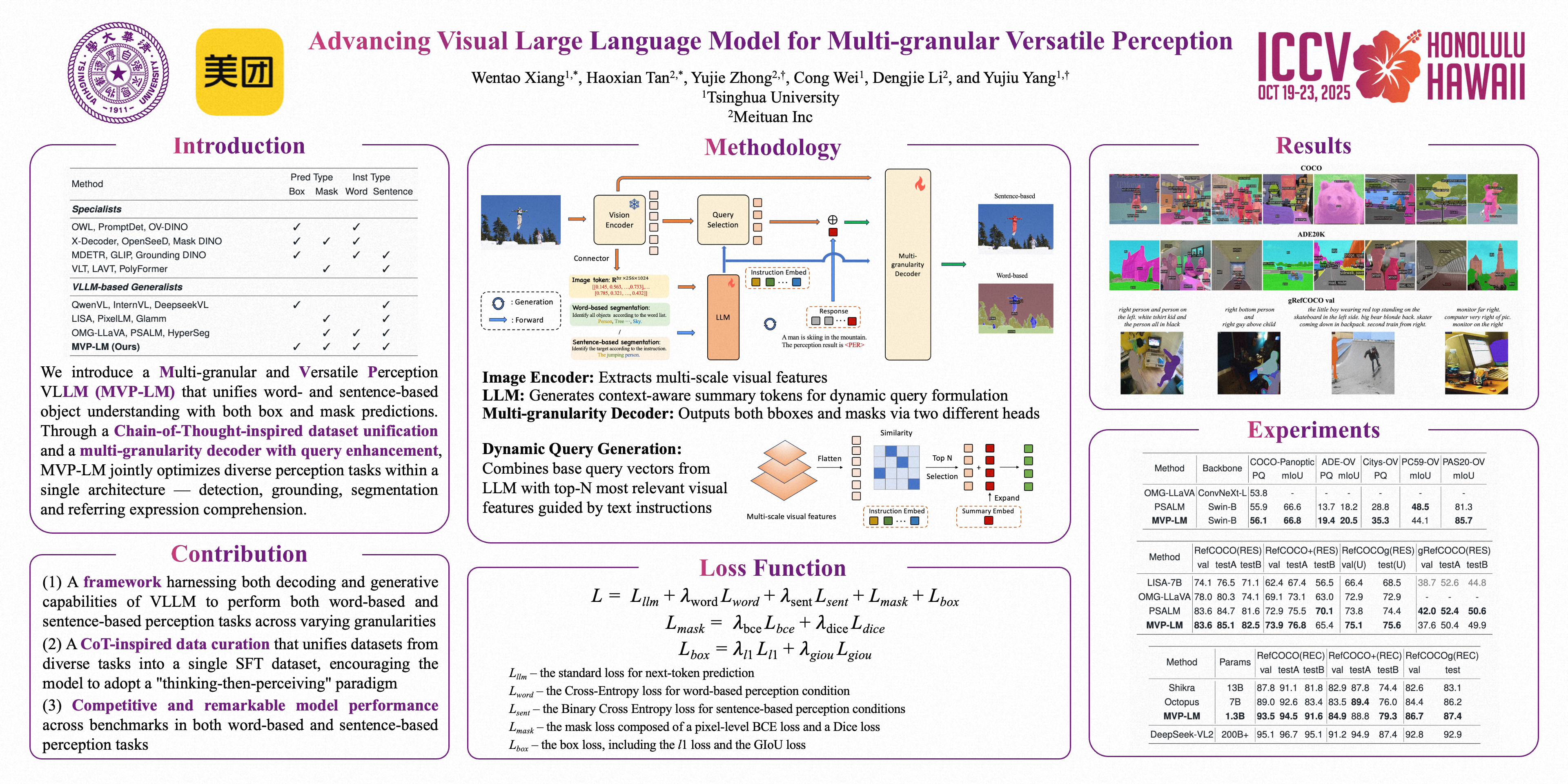 Perception is a fundamental task in the field of computer vision, encompassing a diverse set of subtasks that can be systematically categorized into four distinct groups based on two critical dimensions: prediction type and instruction type. Notably, existing researches often focus solely on a limited subset of these potential combinations, which constrains their applicability and versatility across various contexts. In response to this challenge, we present MVP, a novel and unified Visual Large Language Model (VLLM) framework designed to integrate both word-based and sentence-based perception tasks alongside box and mask predictions, all within a single framework. MVP employs an innovative multi-granularity decoder coupled with a unified prompt template, which together enable the seamless joint training of a wide array of tasks, including but not limited to panoptic segmentation, detection, grounding, and referring expression segmentation. Furthermore, we introduce a query enhancement strategy aimed at harnessing the decoding and generative capabilities inherent in large language models. Extensive experiments conducted across a range of benchmarks in both word-based and sentence-based perception tasks substantiate the efficacy of our framework.