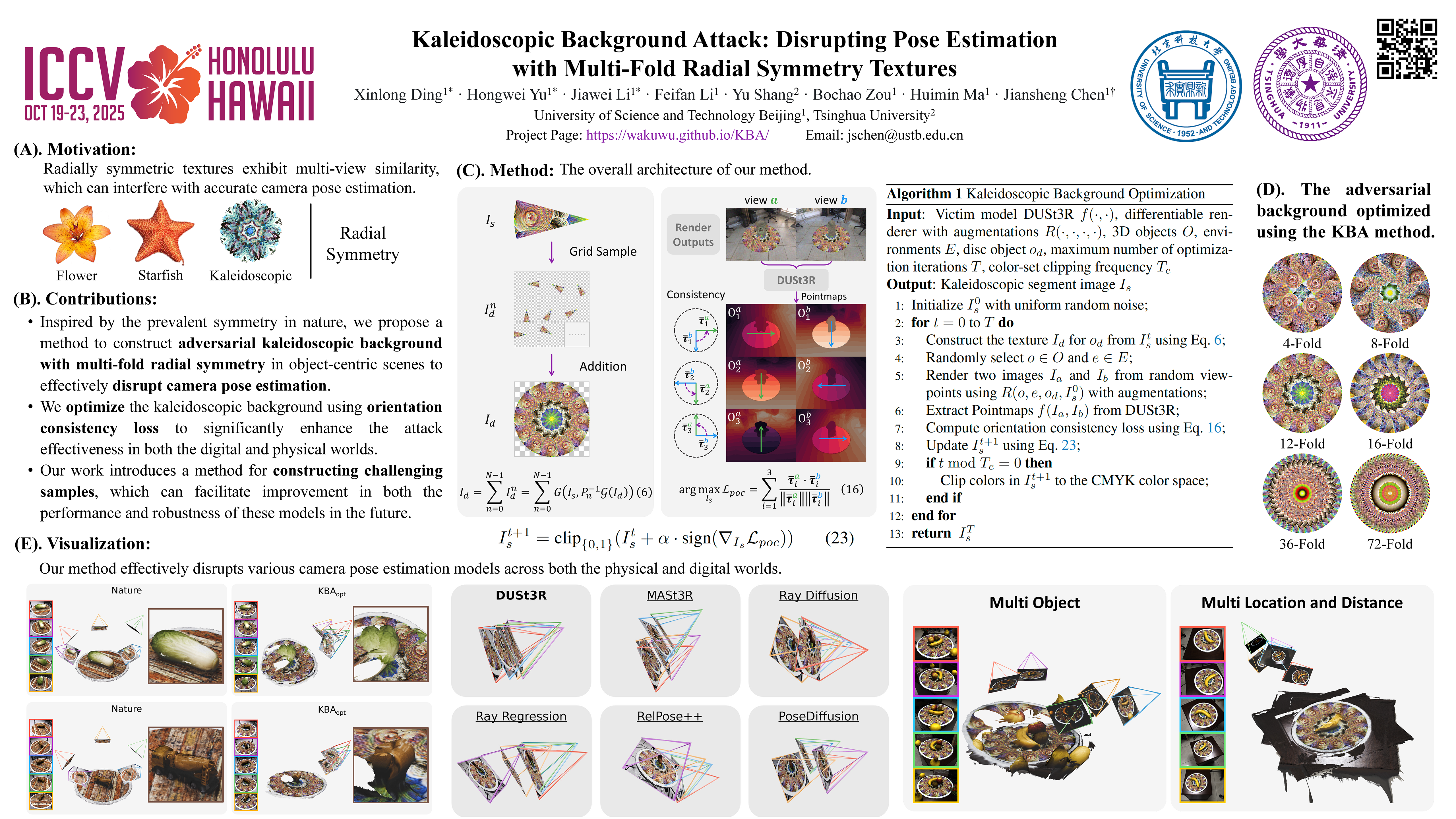 Kaleidoscopic Background Attack: Disrupting Pose Estimation with Multi-Fold Radial Symmetry Textures