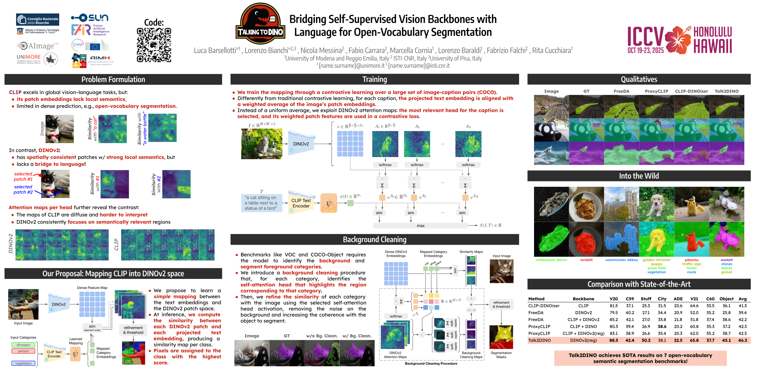 Talking to DINO: Bridging Self-Supervised Vision Backbones with Language for Open-Vocabulary Segmentation