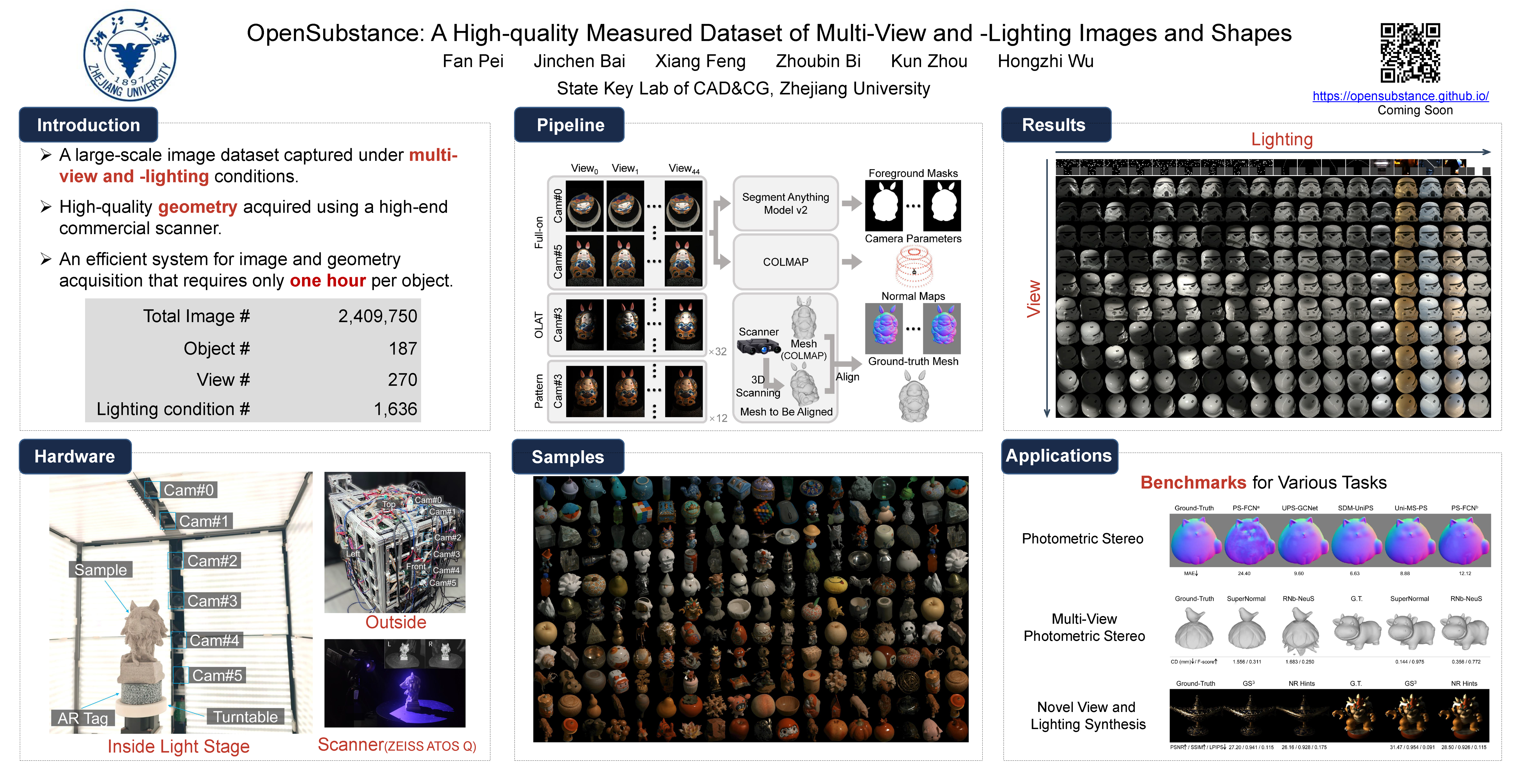 We present OpenSubstance, a high-quality measured dataset with 1.8 million high-dynamic-range images of 151 objects with a wide variety in shape and appearance, captured under 270 camera views and 1,637 lighting conditions, including 1,620 one-light-at-a-time, 8 environment, 8 linear and 1 full-on illumination. For each image, the corresponding lighting condition, camera parameters and foreground segmentation mask are provided. High-precision 3D geometry is also acquired for rigid objects. It takes 1 hour on average to capture one object with our custom-built high-performance lightstage and a top-grade commerical 3D scanner. We perform comprehensive quantitative evaluation on state-of-the-art techniques across different tasks, including single- and multi-view photometric stereo, as well as relighting. The project is publicly available at anonymous link.